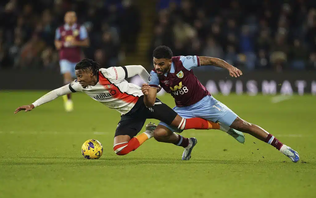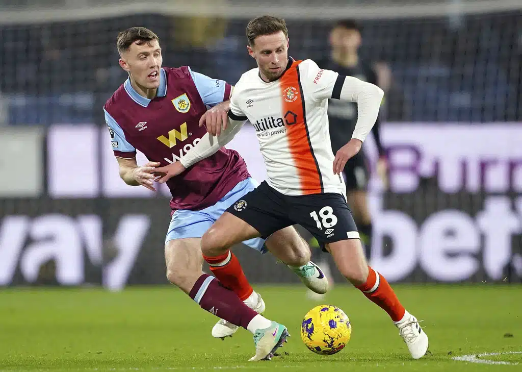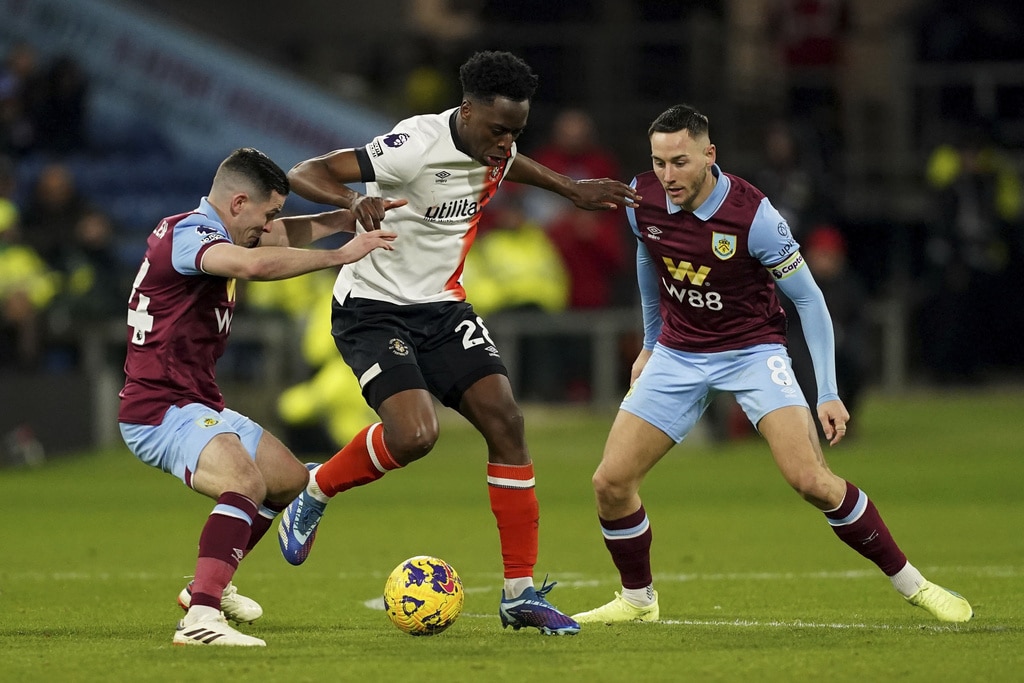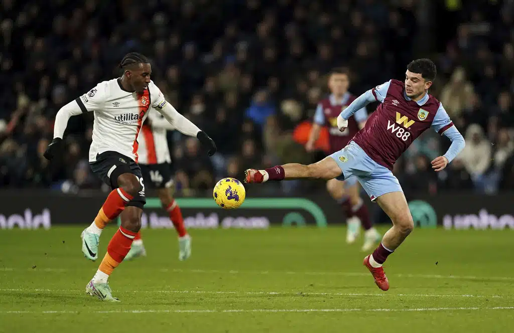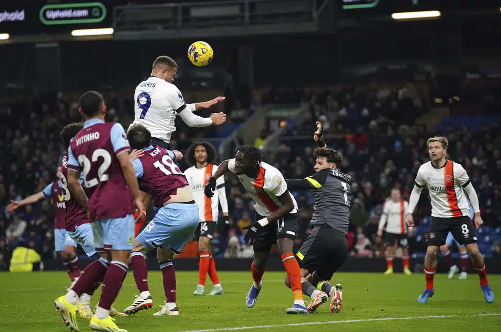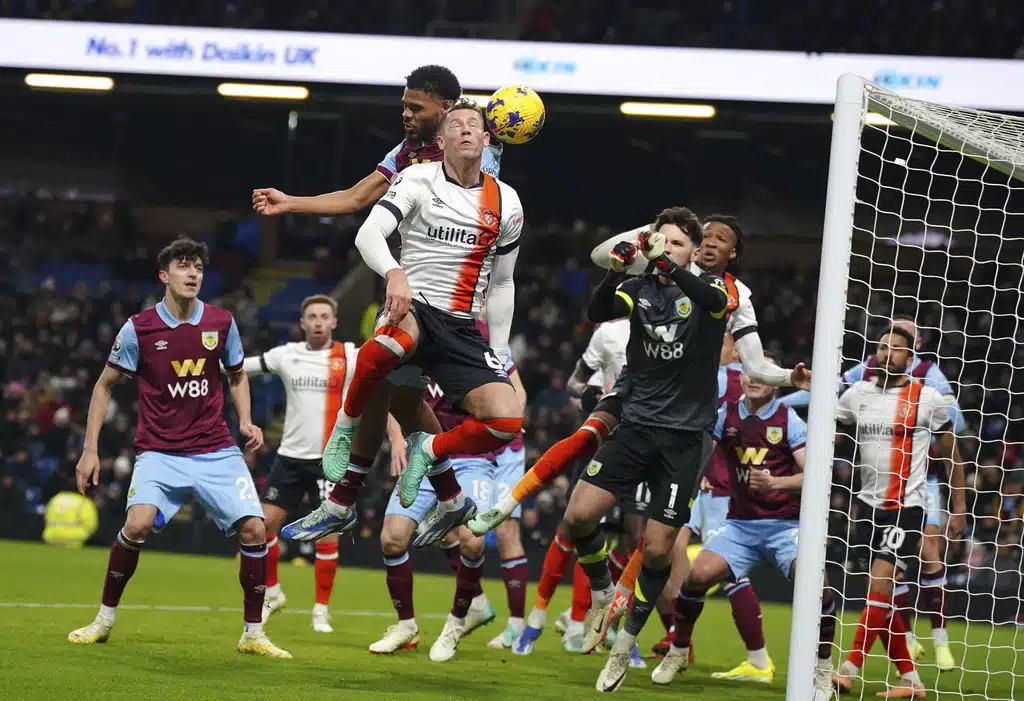 Burnley’s Dara O’Shea, left, and Luton Town’s Jordan Clark battle for the ball during the English Premier League soccer match at Turf Moor, Burnley, England, Friday, Jan. 12, 2024. (Peter Byrne/PA via AP)Luton Town’s Carlton Morris, top, scores their side’s first goal of the game during their English Premier League soccer match against Burnley at Turf Moor, Burnley, England, Friday, Jan. 12, 2024. (Martin Rickett/PA via AP)Luton Town’s Carlton Morris, center, attempts an overhead shot and kicks Burnley’s Josh Brownhill in the face during their English Premier League soccer match at Turf Moor, Burnley, England, Friday, Jan. 12, 2024. (Peter Byrne/PA via AP)Luton Town’s Amari’i Bell, left, and Burnley’s Zeki Amdouni battle for the ball during their English Premier League soccer match at Turf Moor, Burnley, England, Friday, Jan. 12, 2024. (Martin Rickett/PA via AP)Burnley goalkeeper James Trafford collects the ball during their English Premier League soccer match against Luton Town at Turf Moor, Burnley, England, Friday, Jan. 12, 2024. (Peter Byrne/PA via AP)Burnley manager Vincent Kompany addresses his team during their English Premier League soccer match against Luton Town at Turf Moor, Burnley, England, Friday, Jan. 12, 2024. (Peter Byrne/PA via AP)Luton Town’s Ross Barkley, front center, and Burnley’s Lyle Foster battle for the ball during their English Premier League soccer match at Turf Moor, Burnley, England, Friday, Jan. 12, 2024. (Peter Byrne/PA via AP)Luton Town’s Albert Sambi Lokonga, center, battles with Burnley’s Josh Cullen, left, and Josh Brownhill during their English Premier League soccer match at Turf Moor, Burnley, England, Friday, Jan. 12, 2024. (Martin Rickett/PA via AP)Burnley’s Zeki Amdouni celebrates scoring their side’s first goal of the game during their English Premier League soccer match against Luton Town at Turf Moor, Burnley, England, Friday, Jan. 12, 2024. (Peter Byrne/PA via AP)Luton Town’s Ross Barkley, left, and Burnley’s Zeki Amdouni battle for the ball during their English Premier League soccer match at Turf Moor, Burnley, England, Friday, Jan. 12, 2024. (Martin Rickett/PA via AP)