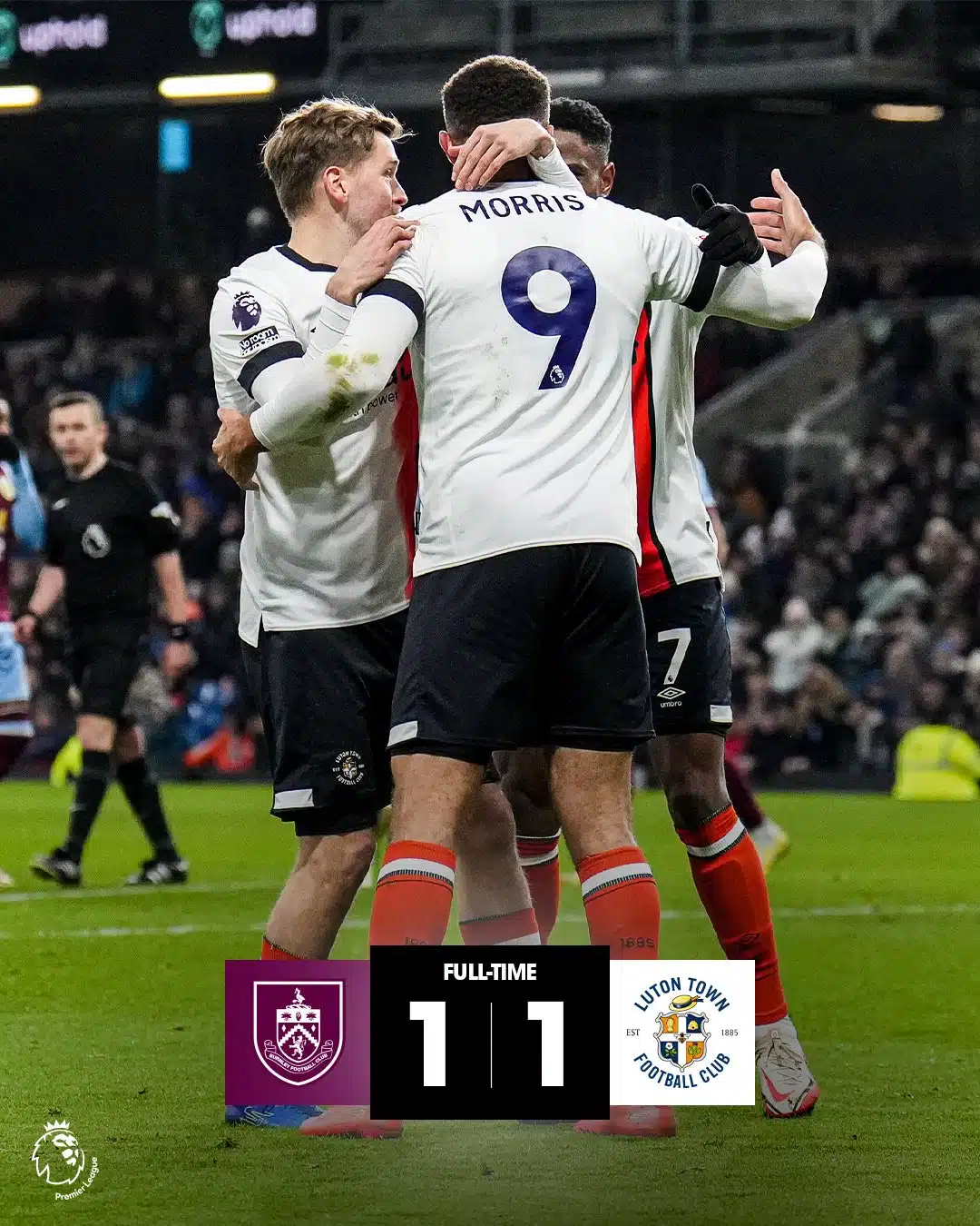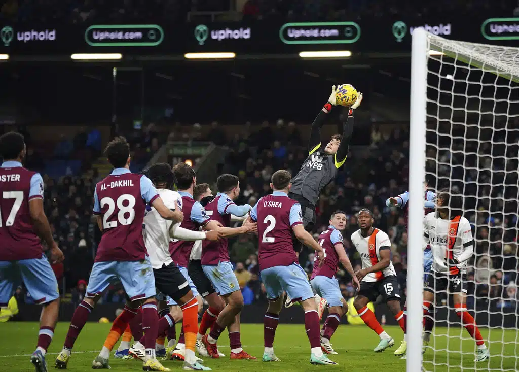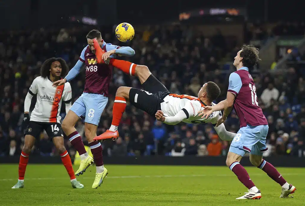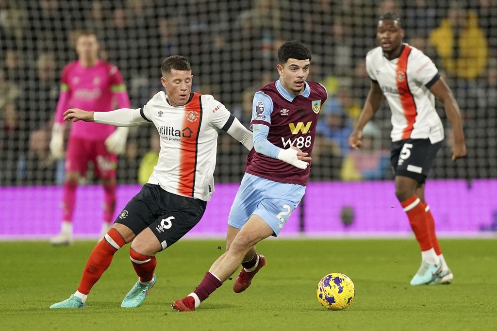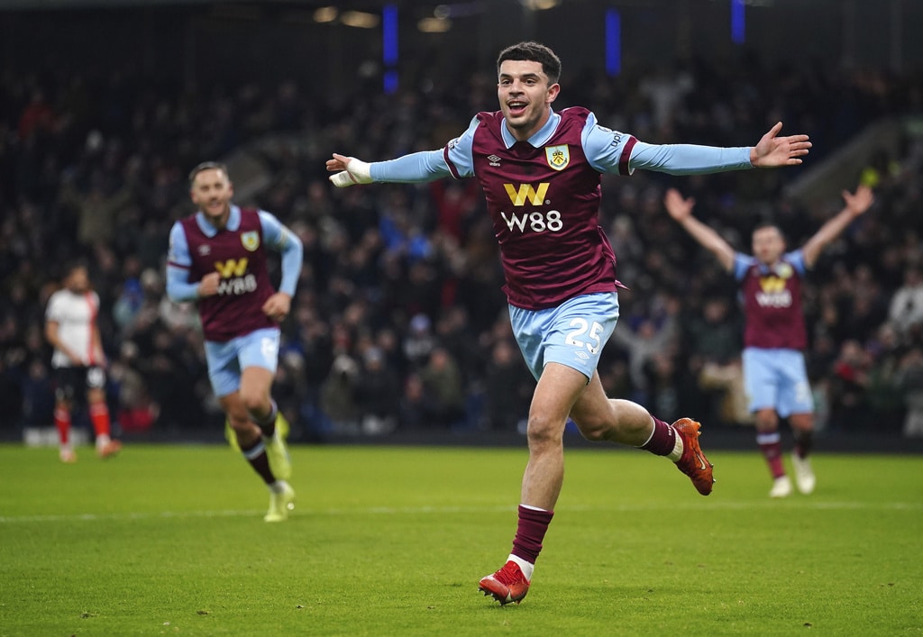 Burnley’s Dara O’Shea, left, and Luton Town’s Jordan Clark battle for the ball during the English Premier League soccer match at Turf Moor, Burnley, England, Friday, Jan. 12, 2024. (Peter Byrne/PA via AP)Luton Town’s Carlton Morris, top, scores their side’s first goal of the game during their English Premier League soccer match against Burnley at Turf Moor, Burnley, England, Friday, Jan. 12, 2024. (Martin Rickett/PA via AP)Luton Town’s Carlton Morris, center, attempts an overhead shot and kicks Burnley’s Josh Brownhill in the face during their English Premier League soccer match at Turf Moor, Burnley, England, Friday, Jan. 12, 2024. (Peter Byrne/PA via AP)Luton Town’s Amari’i Bell, left, and Burnley’s Zeki Amdouni battle for the ball during their English Premier League soccer match at Turf Moor, Burnley, England, Friday, Jan. 12, 2024. (Martin Rickett/PA via AP)Burnley goalkeeper James Trafford collects the ball during their English Premier League soccer match against Luton Town at Turf Moor, Burnley, England, Friday, Jan. 12, 2024. (Peter Byrne/PA via AP)Burnley manager Vincent Kompany addresses his team during their English Premier League soccer match against Luton Town at Turf Moor, Burnley, England, Friday, Jan. 12, 2024. (Peter Byrne/PA via AP)Luton Town’s Ross Barkley, front center, and Burnley’s Lyle Foster battle for the ball during their English Premier League soccer match at Turf Moor, Burnley, England, Friday, Jan. 12, 2024. (Peter Byrne/PA via AP)Luton Town’s Albert Sambi Lokonga, center, battles with Burnley’s Josh Cullen, left, and Josh Brownhill during their English Premier League soccer match at Turf Moor, Burnley, England, Friday, Jan. 12, 2024. (Martin Rickett/PA via AP)Burnley’s Zeki Amdouni celebrates scoring their side’s first goal of the game during their English Premier League soccer match against Luton Town at Turf Moor, Burnley, England, Friday, Jan. 12, 2024. (Peter Byrne/PA via AP)Luton Town’s Ross Barkley, left, and Burnley’s Zeki Amdouni battle for the ball during their English Premier League soccer match at Turf Moor, Burnley, England, Friday, Jan. 12, 2024. (Martin Rickett/PA via AP)