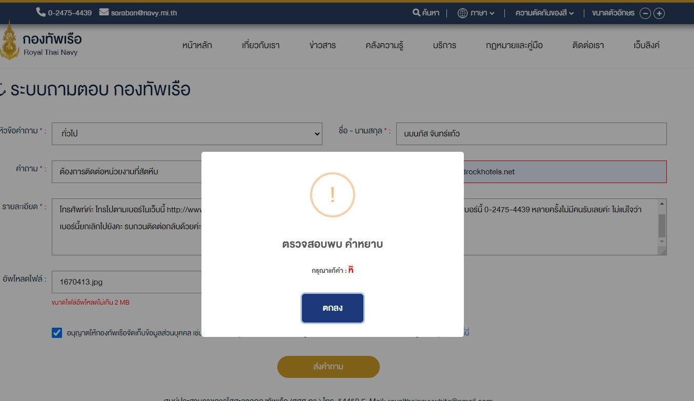 สาวงงตาแตก ส่งอีเมลหา ‘กองทัพเรือ’ ไม่ได้ เว็บจับ “สัตหีบ” เป็นคำหยาบ