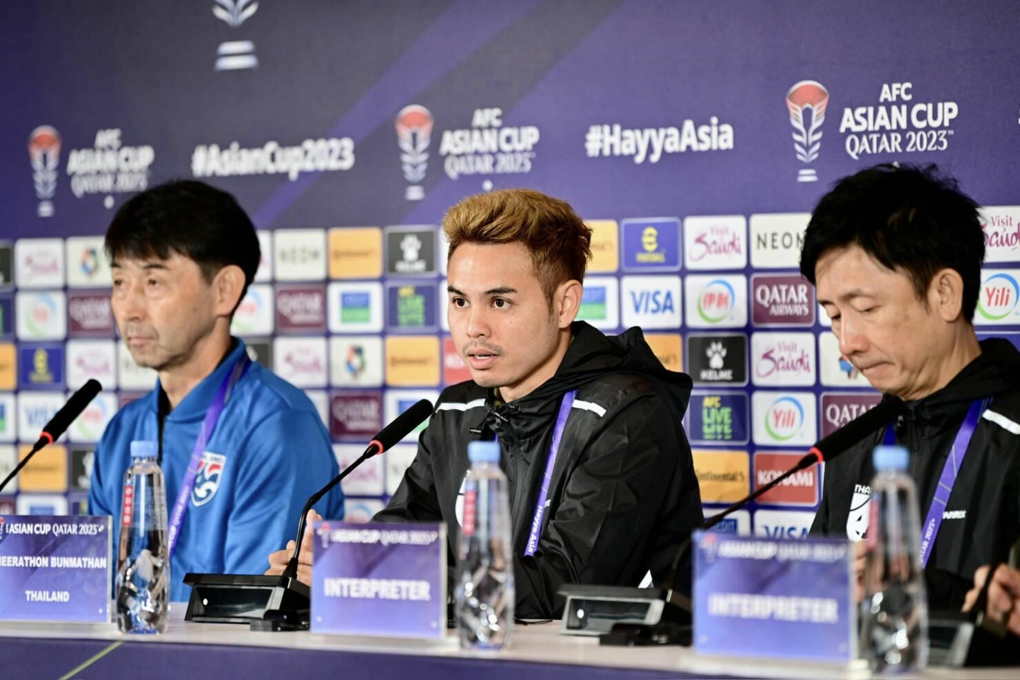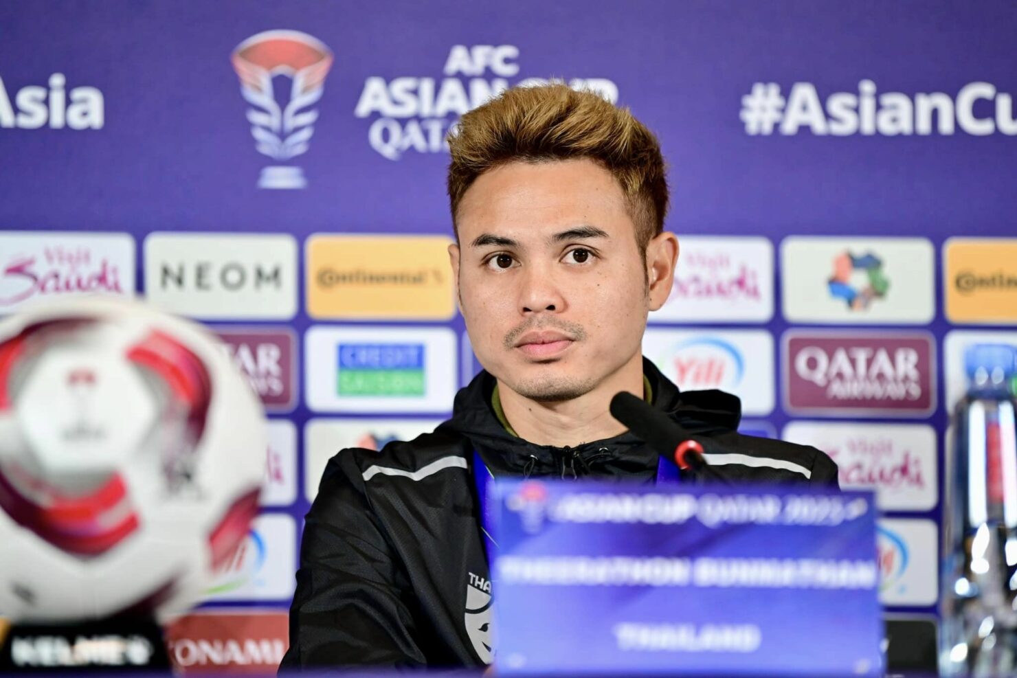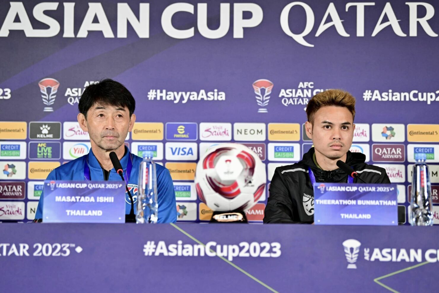“อิชิอิ-ธีราทร” เป็นตัวแทน ทีมชาติไทย แถลงข่าว ก่อนเกมเอเชียน คัพ นัดแรก กับคีร์กิซสถาน