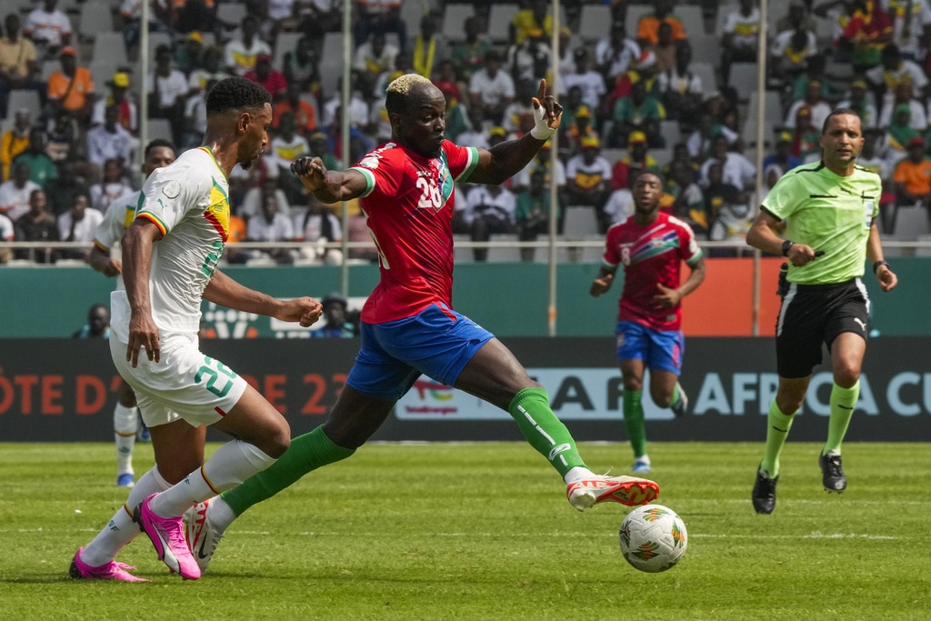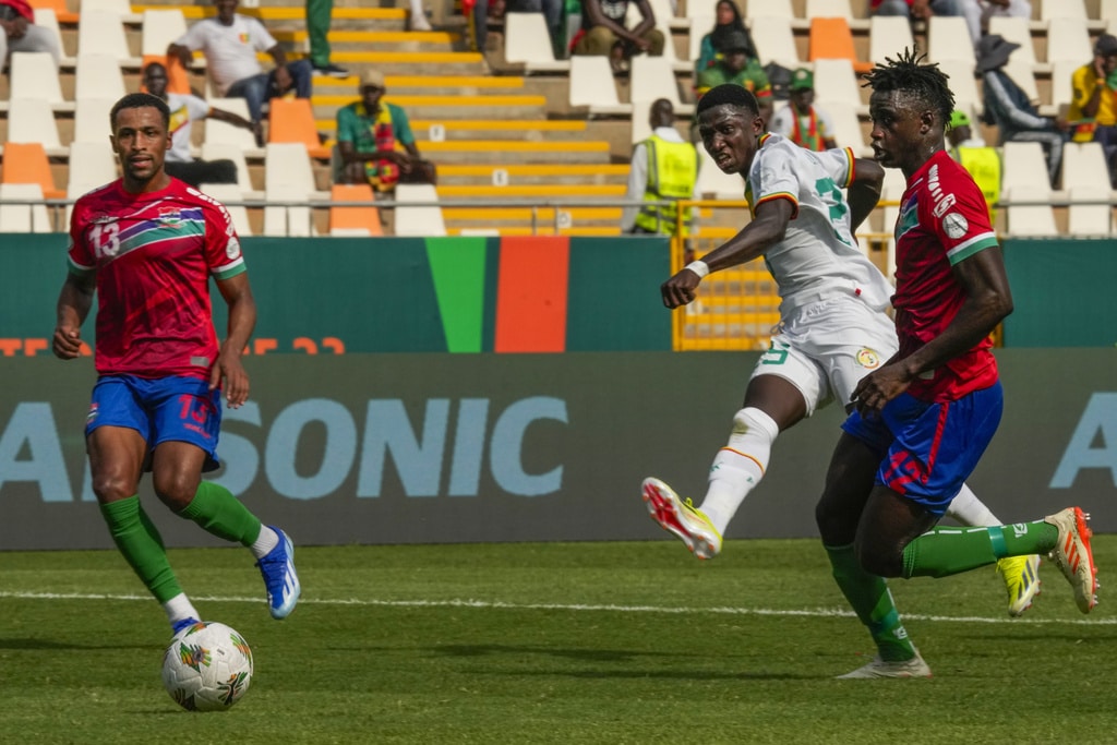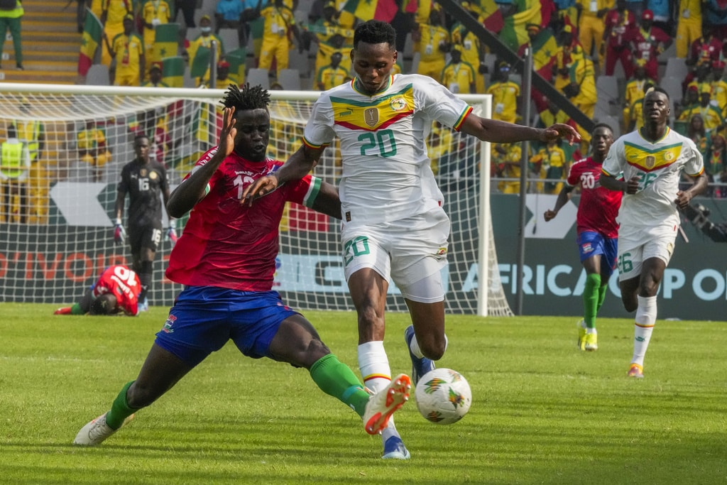 Senegal’s Pape Gueye, right, celebrates after scoring the opening goal during the African Cup of Nations Group C soccer match between Senegal and Gambia at the Charles Konan Banny stadium in Yamoussoukro, Ivory Coast, Monday, Jan. 15, 2024. (AP Photo/Sunday Alamba)Senegal’s players celebrate after teammate Lamine Camara scored their side’s third goal during the African Cup of Nations Group C soccer match between Senegal and Gambia at the Charles Konan Banny stadium in Yamoussoukro, Ivory Coast, Monday, Jan. 15, 2024. Senegal won 3-0. (AP Photo/Sunday Alamba)Senegal’s Sadio Mane, right, vies for the ball with Gambia’s Saidy Janko during the African Cup of Nations Group C soccer match between Senegal and Gambia at the Charles Konan Banny stadium in Yamoussoukro, Ivory Coast, Monday, Jan. 15, 2024. (AP Photo/Sunday Alamba)Senegal’s Habib Diallo, right, tussles for the ball with Gambia’s James Gomez during the African Cup of Nations Group C soccer match between Senegal and Gambia at the Charles Konan Banny stadium in Yamoussoukro, Ivory Coast, Monday, Jan. 15, 2024. (AP Photo/Sunday Alamba)Senegal’s Lamine Camara, center, shoots the ball to score his side’s second goal during the African Cup of Nations Group C soccer match between Senegal and Gambia at the Charles Konan Banny stadium in Yamoussoukro, Ivory Coast, Monday, Jan. 15, 2024. (AP Photo/Sunday Alamba)Senegal’s players celebrate after teammate Lamine Camara scored their side’s second goal during the African Cup of Nations Group C soccer match between Senegal and Gambia at the Charles Konan Banny stadium in Yamoussoukro, Ivory Coast, Monday, Jan. 15, 2024. (AP Photo/Sunday Alamba)Senegal’s Kalidou Koulibaly, second left, attempts a shoot at the goal during the African Cup of Nations Group C soccer match between Senegal and Gambia at the Charles Konan Banny stadium in Yamoussoukro, Ivory Coast, Monday, Jan. 15, 2024. (AP Photo/Sunday Alamba)Senegal’s Kalidou Koulibaly, left, fights for the ball with Gambia’s Musa Barrow during the African Cup of Nations Group C soccer match between Senegal and Gambia at the Charles Konan Banny stadium in Yamoussoukro, Ivory Coast, Monday, Jan. 15, 2024. (AP Photo/Sunday Alamba)Gambia’s Ali Sowe, right, battles for the ball with Senegal’s Abdou Diallo during the African Cup of Nations Group C soccer match between Senegal and Gambia at the Charles Konan Banny stadium in Yamoussoukro, Ivory Coast, Monday, Jan. 15, 2024. (AP Photo/Sunday Alamba)Gambia’s Yankuba Minteh, right, vies for the ball with Senegal’s Kalidou Koulibaly, during the African Cup of Nations Group C soccer match between Senegal and Gambia at the Charles Konan Banny stadium in Yamoussoukro, Ivory Coast, Monday, Jan. 15, 2024. (AP Photo/Sunday Alamba)