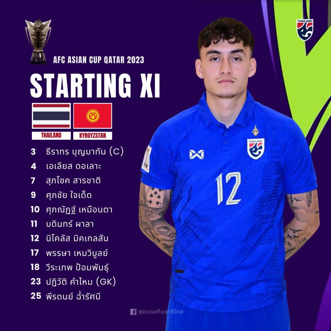 Lineup 11 ตัวจริง ทีมชาติไทย VS ทีมชาติคีร์กีซสถาน ฟุตบอล เอเชียน คัพ 2023 รอบแบ่งกลุ่ม กลุ่มเอฟ แมตช์แรก
