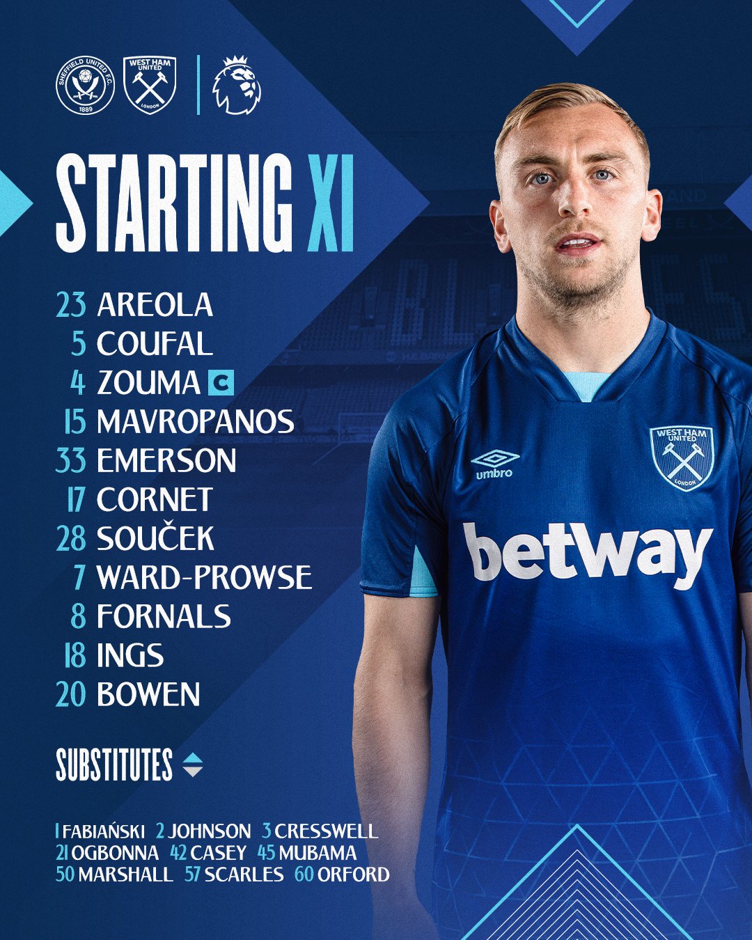 11 ตัวจริง เชฟฯ ยูไนเต็ด พบ เวสต์แฮม แข่ง 21.00 น. ฟุตบอล พรีเมียร์ลีก (ลิงก์ดูบอลสด)