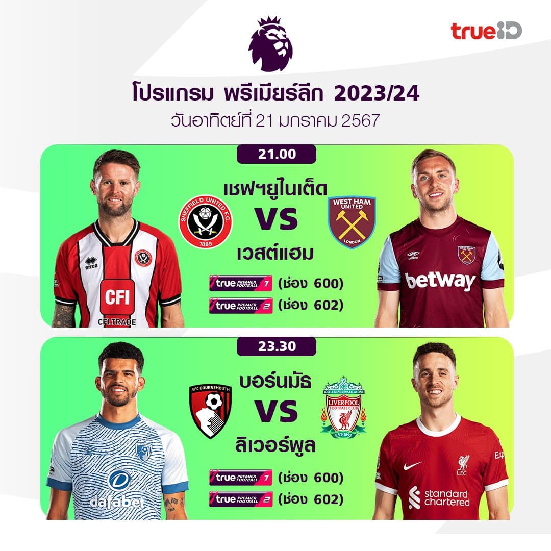 - ถ่ายทอดสด : True Premier Football 1 , True Premier Football 2