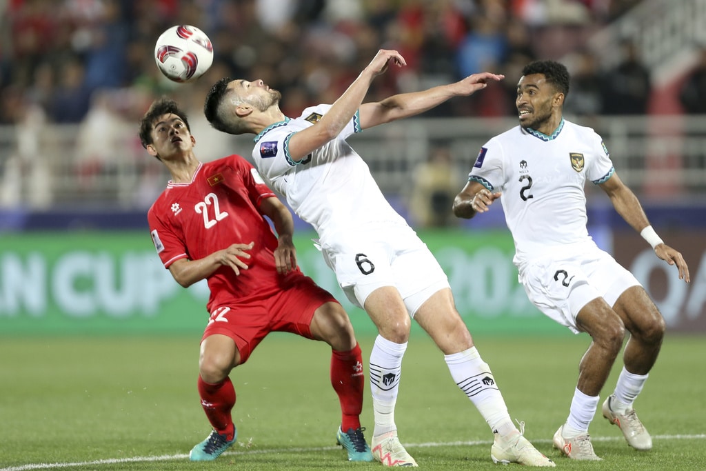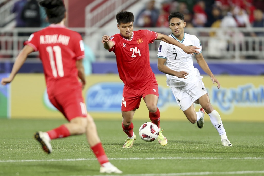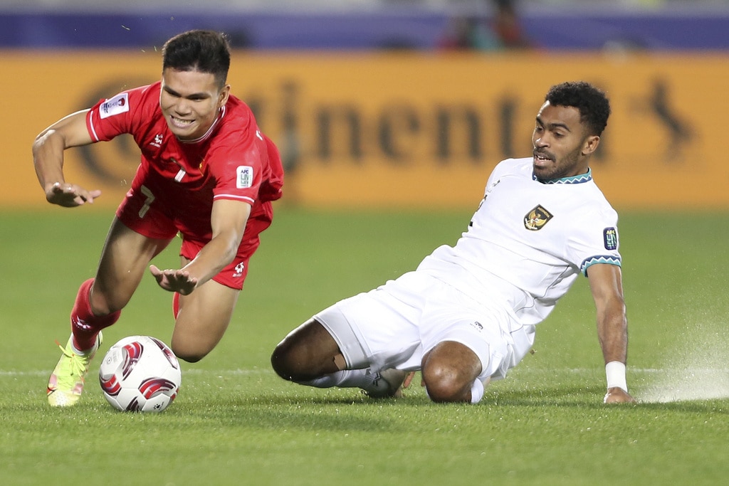 Indonesia’s Yakob Sayuri fouls Vietnam’s Pham Xuan Manh, left, during the Asian Cup Group D soccer match between Vietnam and Indonesia at Abdullah Bin Khalifa Stadium in Doha, Qatar, Friday, Jan. 19, 2024. (AP Photo/Hussein Sayed)Vietnam’s Khuat Van Khang eyes the ball and holds off Indonesia’s Sandy Walsh, right, during the Asian Cup Group D soccer match between Vietnam and Indonesia at Abdullah Bin Khalifa Stadium in Doha, Qatar, Friday, Jan. 19, 2024. (AP Photo/Hussein Sayed)Indonesia’s Sandy Walsh vies for the ball with Vietnam’s Khuat Van Khang, left, during the Asian Cup Group D soccer match between Vietnam and Indonesia at Abdullah Bin Khalifa Stadium in Doha, Qatar, Friday, Jan. 19, 2024. (AP Photo/Hussein Sayed)Indonesia’s Rizky Ridho Ramadhani, left, celebrates with goalkeeper Ernando Ari Sutaryadi at the end of the Asian Cup Group D soccer match between Vietnam and Indonesia at Abdullah Bin Khalifa Stadium in Doha, Qatar, Friday, Jan. 19, 2024. Indonesia won 1-0. (AP Photo/Hussein Sayed)Indonesia’s Sandy Walsh vies for the ball with Vietnam’s Khuat Van Khang, left, during the Asian Cup Group D soccer match between Vietnam and Indonesia at Abdullah Bin Khalifa Stadium in Doha, Qatar, Friday, Jan. 19, 2024. (AP Photo/Hussein Sayed)Vietnam’s Bui Hoang Viet Anh reaches for the ball during the Asian Cup Group D soccer match between Vietnam and Indonesia at Abdullah Bin Khalifa Stadium in Doha, Qatar, Friday, Jan. 19, 2024. (AP Photo/Hussein Sayed)Indonesia’s Justin Hubner vies for the ball with Vietnam’s Nguyen Van Toan, right, during the Asian Cup Group D soccer match between Vietnam and Indonesia at Abdullah Bin Khalifa Stadium in Doha, Qatar, Friday, Jan. 19, 2024. (AP Photo/Hussein Sayed)Vietnam’s Nuyen Van Tung runs with the ball away from Indonesia’s Marselino Ferdinan, right, during the Asian Cup Group D soccer match between Vietnam and Indonesia at Abdullah Bin Khalifa Stadium in Doha, Qatar, Friday, Jan. 19, 2024. (AP Photo/Hussein Sayed)