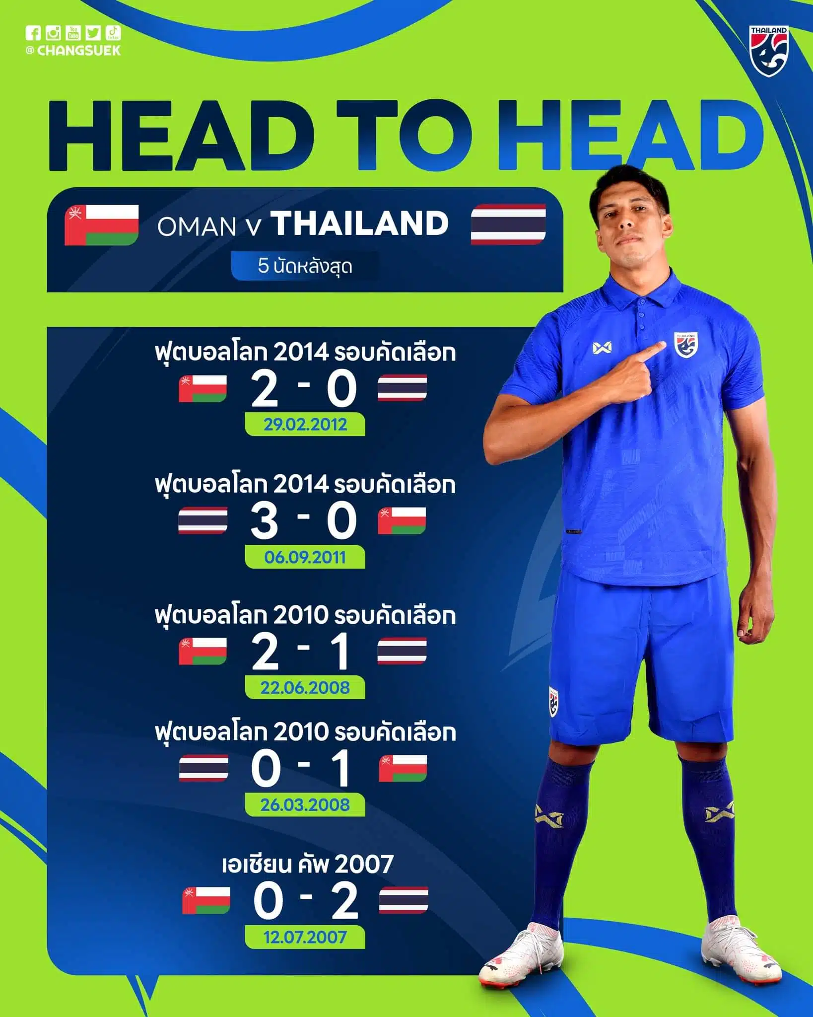 ถ้าดูจากสถิติพบกัน 5 ครั้งหลังสุดถือว่ามีลุ้น ไทยเคยชนะโอมาน 2 ใน 5 ครั้ง แถมไม่ได้เสียเปรียบลูกประตูได้เสียเท่าใดนัก