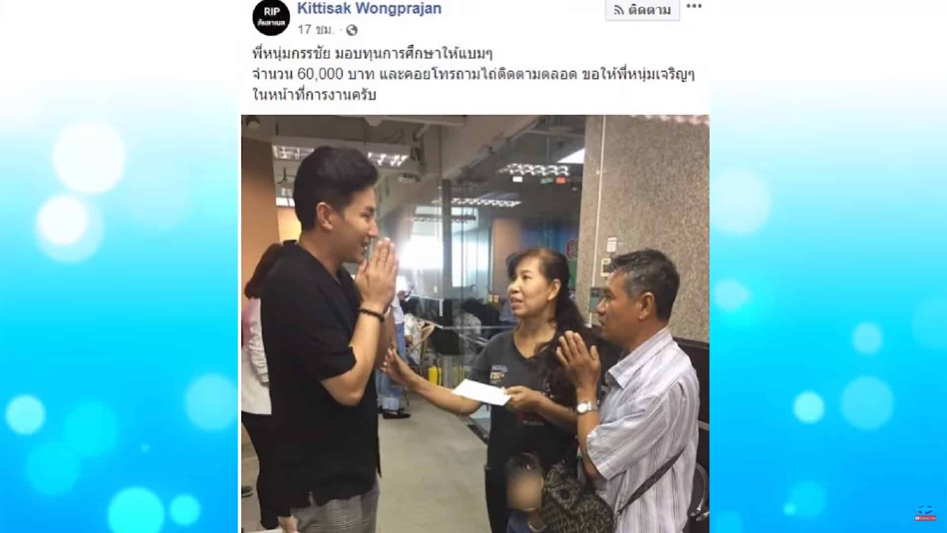 ล่าสุด ช่วย น้องบอส หลังพ่อเป็นสโตรก ขาดเสาหลัก ทราบเรื่องมาก็ช่วยส่งเสียน้อง หรือสิ่งที่พี่ทำ ไม่ว่าจะลูกลัลลาเบล หรือน้องปากแหว่ง เพดานโหว่ พี่ก็จ่ายค่ารักษา ใช้หนี้ที่บ้านให้หมด
