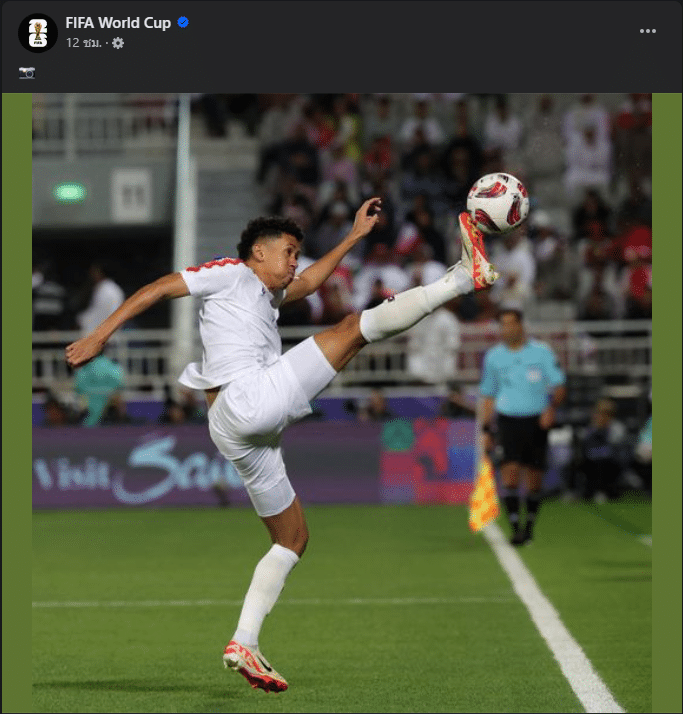ล่าสุด เพจฟุตบอลโลก หรือ FIFA World Cup ได้ลงภาพของ บดินทร์ ผาลา ปีกตัวเก่งทีมชาติไทยจาก การท่าเรือ เอฟซี ที่กำลังยกขาจับบอล พร้อมแคปชั่น กล้องถ่ายรูป