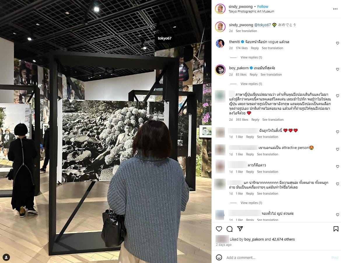 ปิงปอง เผยว่า ตอนนั้นไม่รู้ว่าเขาคือใคร แค่ขอให้ช่วยถ่ายรูป เพิ่งรู้ว่าคนที่กดชัตเตอร์ให้นั้นเป็นถึงช่างภาพชาวญี่ปุ่น จากนั้นได้แชร์เรื่องราวสุดบังเอิญนี้ผ่านไอจี sindy_pwoong ระบุแคปชันว่า “แก ..น้องทักมาแบบนี้”