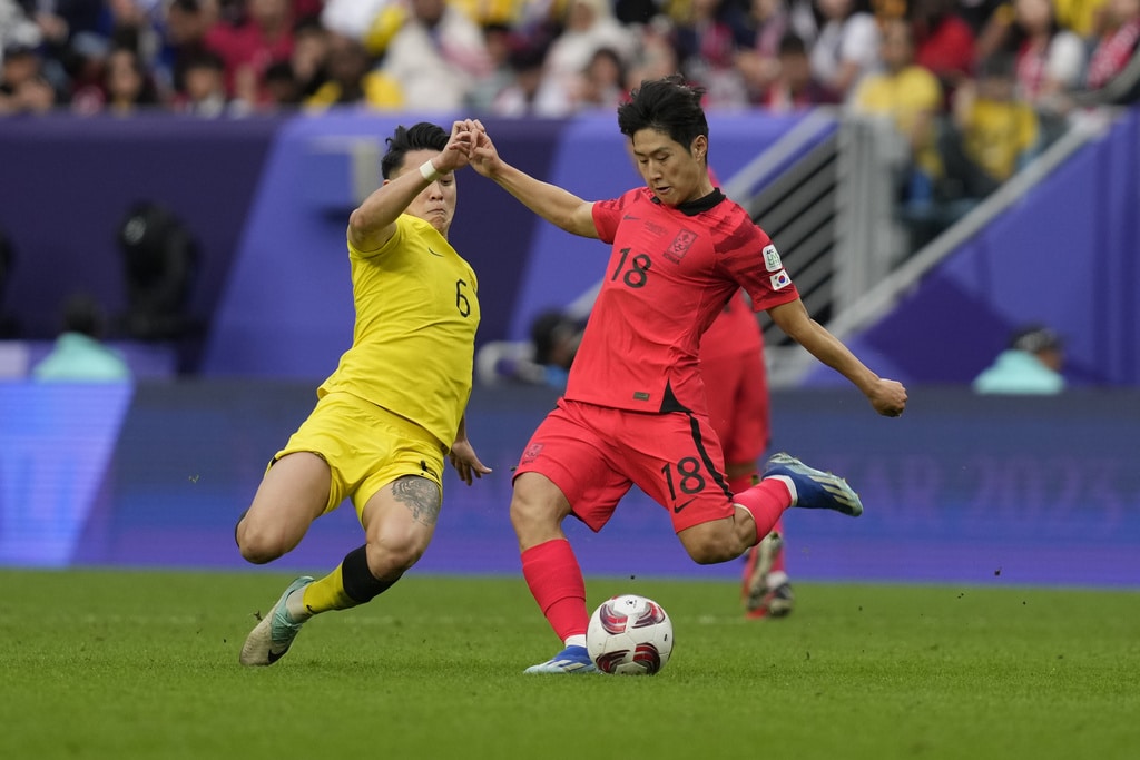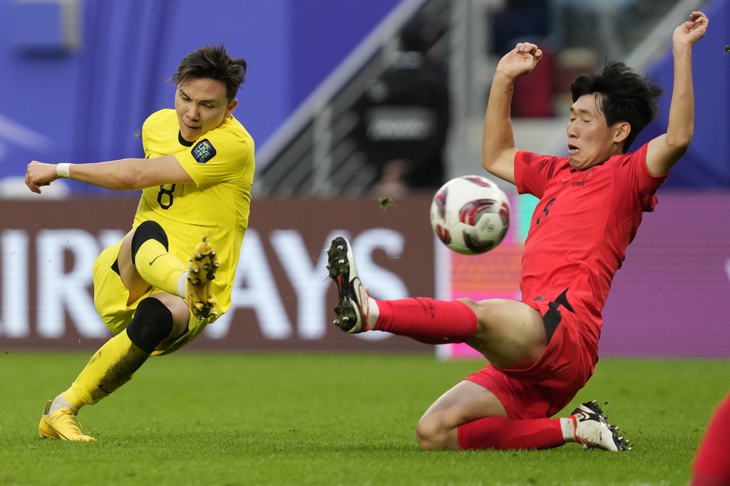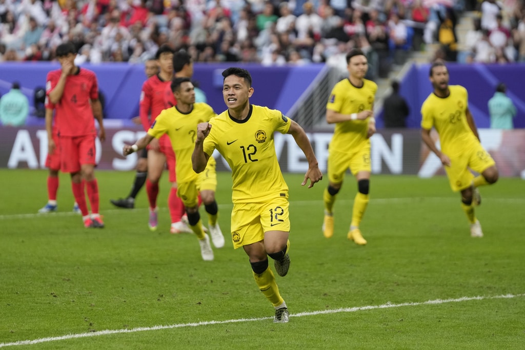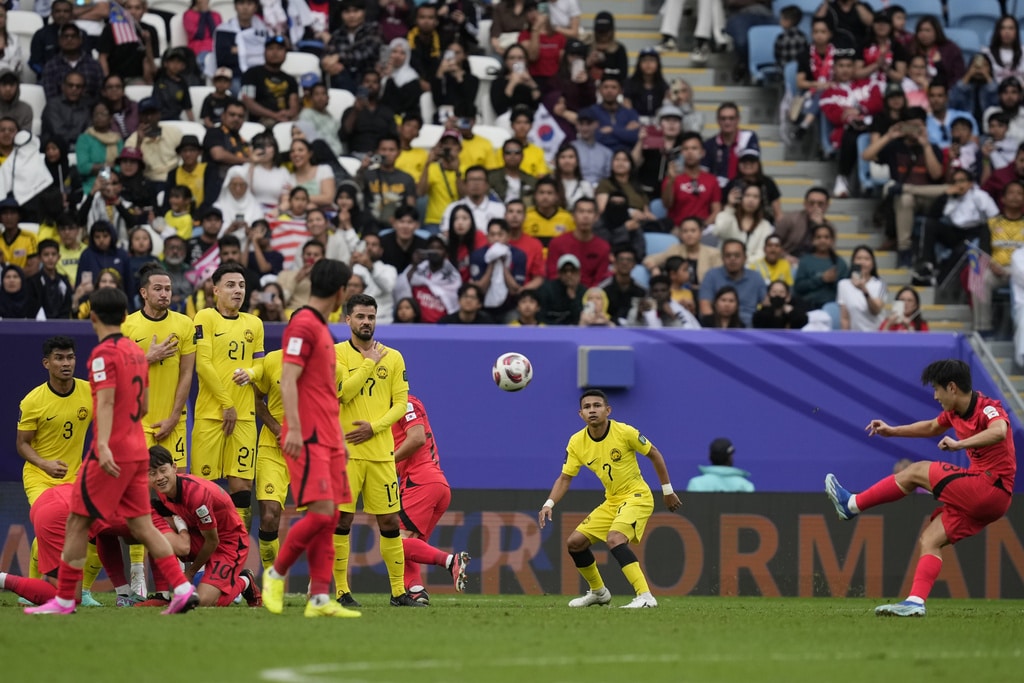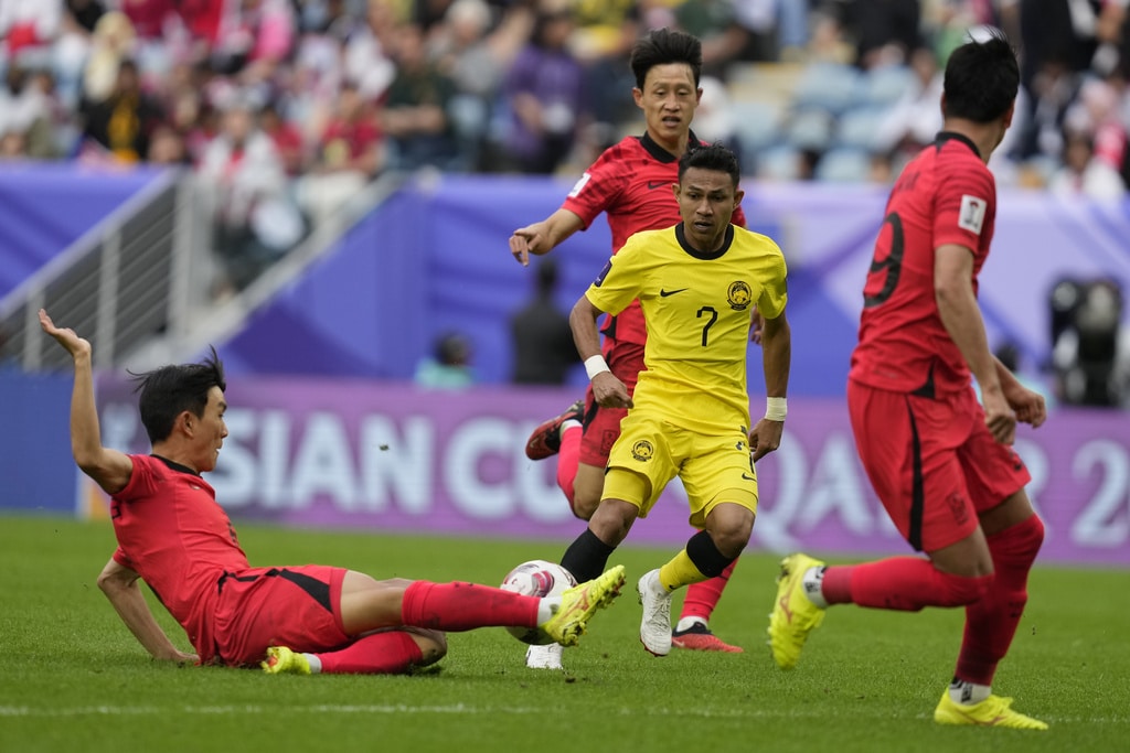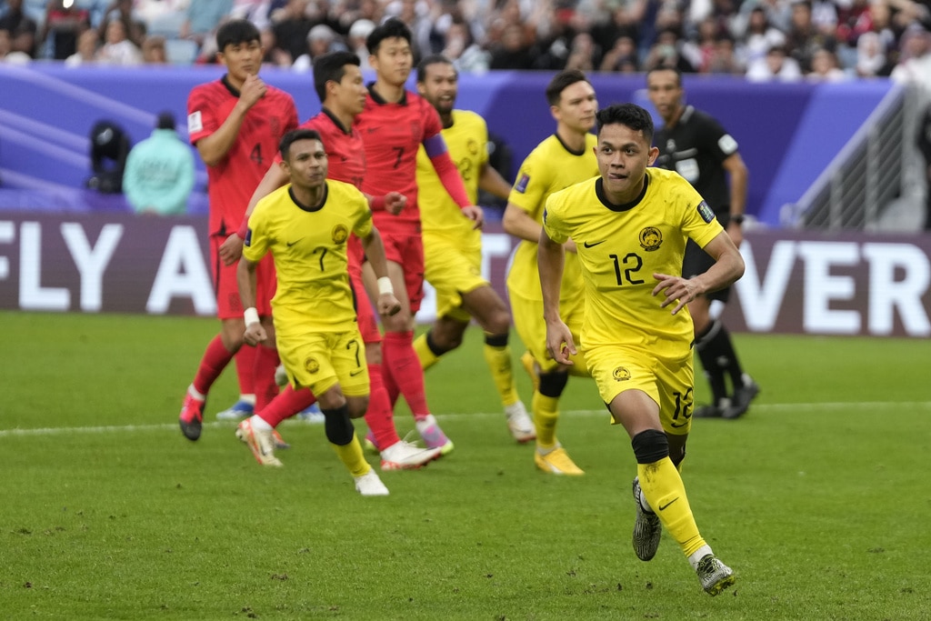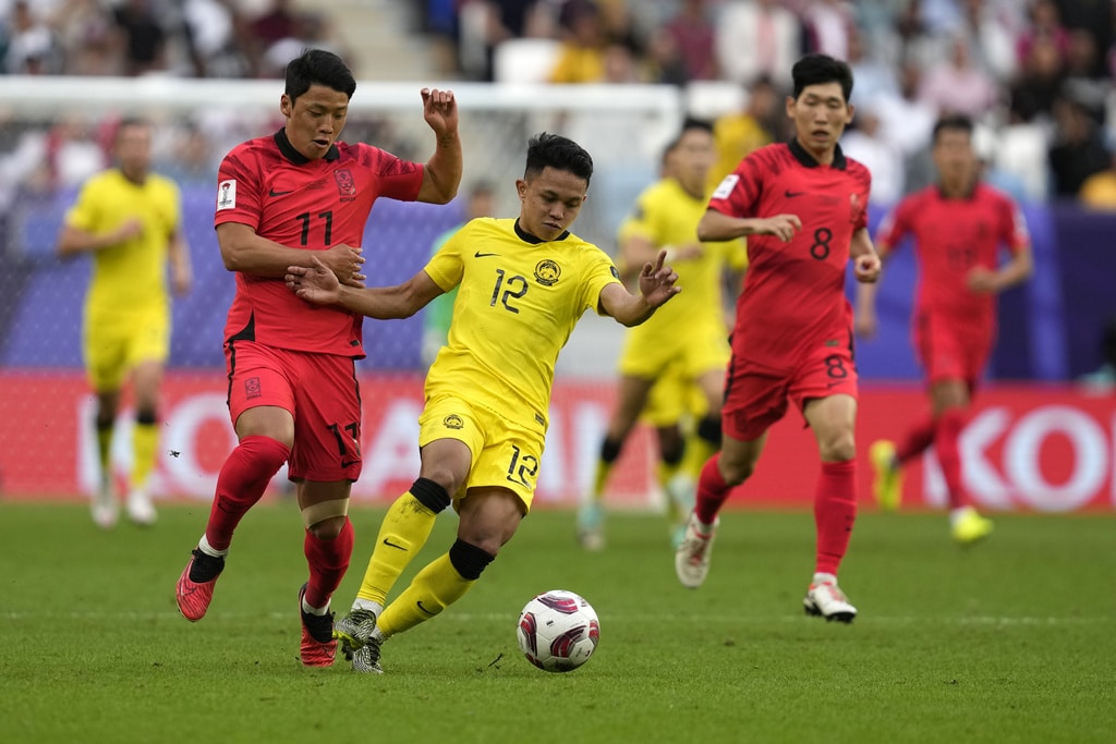 South Korea’s Hwang In-beom falls on the ground as he tries to stop Malaysia’s Faisal Halim, center, during the Asian Cup Group E soccer match between South Korea and Malaysia at Al Janoub Stadium in Al Wakrah, Qatar, Thursday, Jan. 25, 2024. (AP Photo/Thanassis Stavrakis)South Korea’s Hong Hyun-seok, right, fights against Malaysia’s Stuart Wilkin during the Asian Cup Group E soccer match between South Korea and Malaysia at Al Janoub Stadium in Al Wakrah, Qatar, Thursday, Jan. 25, 2024. (AP Photo/Thanassis Stavrakis)South Korea’s Lee Kang-in, right, shoots to score his side’s second goal during the Asian Cup Group E soccer match between South Korea and Malaysia at Al Janoub Stadium in Al Wakrah, Qatar, Thursday, Jan. 25, 2024. (AP Photo/Thanassis Stavrakis)Malaysia’s Dominic Tan, left, and South Korea’s Lee Kang-in vie for the ball during the Asian Cup Group E soccer match between South Korea and Malaysia at Al Janoub Stadium in Al Wakrah, Qatar, Thursday, Jan. 25, 2024. (AP Photo/Thanassis Stavrakis)Malaysia’s Arif Aiman Hanapi, center, goes for the ball against South Korea’s Hwang Hee-chan, left, during the Asian Cup Group E soccer match between South Korea and Malaysia at Al Janoub Stadium in Al Wakrah, Qatar, Thursday, Jan. 25, 2024. (AP Photo/Thanassis Stavrakis)Malaysia’s Arif Aiman Hanapi, right, celebrates after scoring his side’s second goal during the Asian Cup Group E soccer match between South Korea and Malaysia at Al Janoub Stadium in Al Wakrah, Qatar, Thursday, Jan. 25, 2024. (AP Photo/Thanassis Stavrakis)Malaysia’s Arif Aiman Hanapi celebrates after scoring his side’s second goal during the Asian Cup Group E soccer match between South Korea and Malaysia at Al Janoub Stadium in Al Wakrah, Qatar, Thursday, Jan. 25, 2024. (AP Photo/Thanassis Stavrakis)Malaysia’s Arif Aiman Hanapi celebrates after scoring his side’s second goal during the Asian Cup Group E soccer match between South Korea and Malaysia at Al Janoub Stadium in Al Wakrah, Qatar, Thursday, Jan. 25, 2024. (AP Photo/Thanassis Stavrakis)Malaysia’s Faisal Halim celebrates after scoring his side’s first goal during the Asian Cup Group E soccer match between South Korea and Malaysia at Al Janoub Stadium in Al Wakrah, Qatar, Thursday, Jan. 25, 2024. (AP Photo/Thanassis Stavrakis)