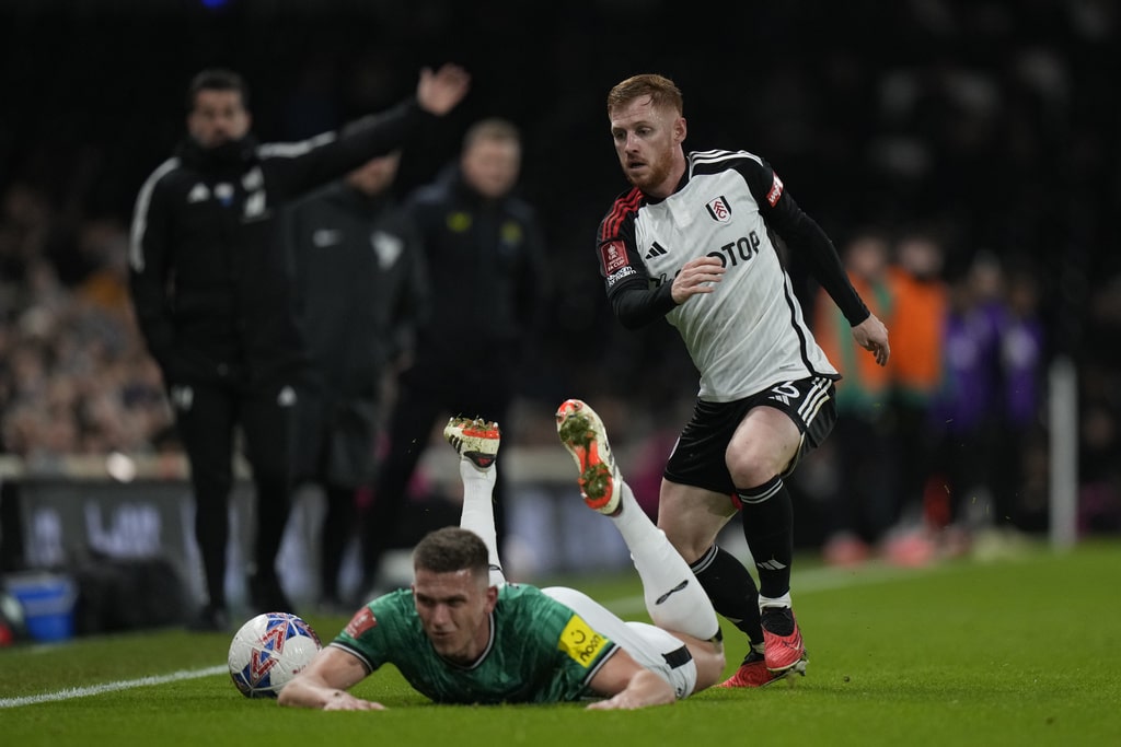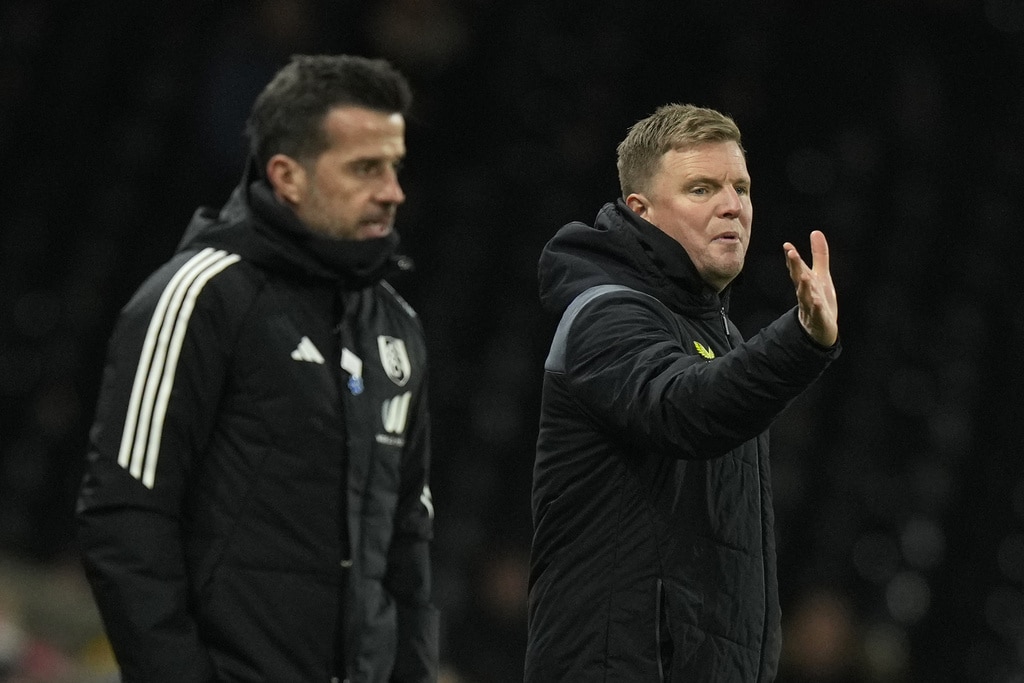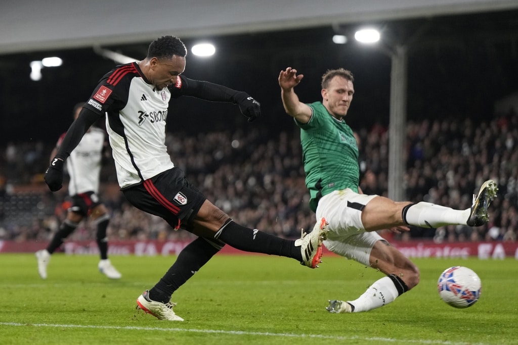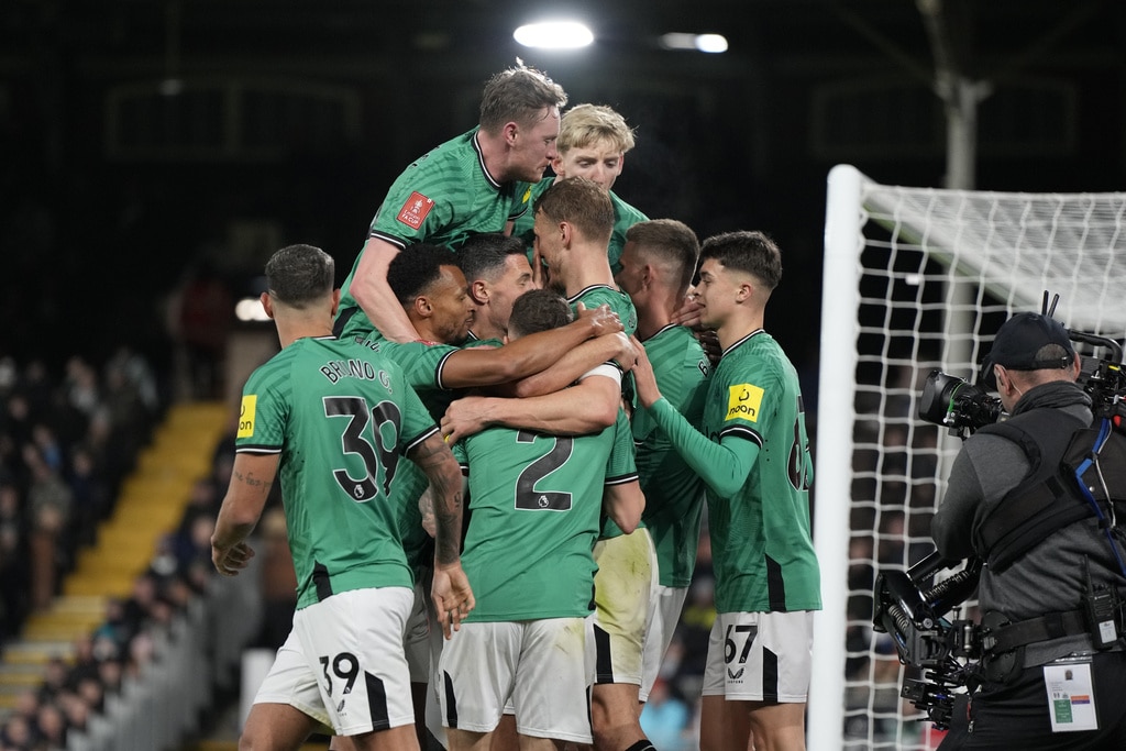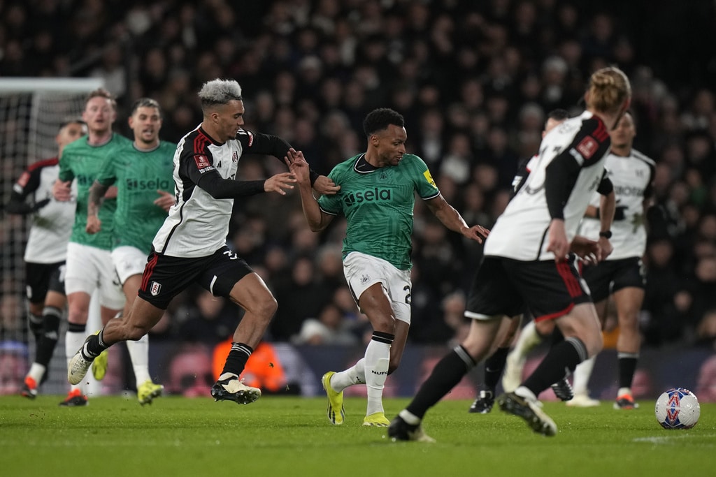 Newcastle’s Anthony Gordon, left, is challenged by Fulham’s Harrison Reed during the English FA Cup fourth round soccer match between Fulham and Newcastle United at Craven Cottage stadium in London, Saturday, Jan. 27, 2024. (AP Photo/Alastair Grant)Newcastle’s Dan Burn, right, celebrates after scoring his side’s second goal during the English FA Cup fourth round soccer match between Fulham and Newcastle United at Craven Cottage stadium in London, Saturday, Jan. 27, 2024. (AP Photo/Alastair Grant)Newcastle’s Dan Burn, right, celebrates after scoring his side’s second goal during the English FA Cup fourth round soccer match between Fulham and Newcastle United at Craven Cottage stadium in London, Saturday, Jan. 27, 2024. (AP Photo/Alastair Grant)Newcastle’s Jacob Murphy, center right, is challenged by Fulham’s Antonee Robinson during the English FA Cup fourth round soccer match between Fulham and Newcastle United at Craven Cottage stadium in London, Saturday, Jan. 27, 2024. (AP Photo/Alastair Grant)Fulham’s Kenny Tete, left, attempts a shot at goal in front of Newcastle’s Elliot Anderson during the English FA Cup fourth round soccer match between Fulham and Newcastle United at Craven Cottage stadium in London, Saturday, Jan. 27, 2024. (AP Photo/Alastair Grant)Newcastle’s head coach Eddie Howe, right, gives instructions from the side line during the English FA Cup fourth round soccer match between Fulham and Newcastle United at Craven Cottage stadium in London, Saturday, Jan. 27, 2024. (AP Photo/Alastair Grant)Newcastle’s Sven Botman, bottom, is challenged by Fulham’s Harrison Reed during the English FA Cup fourth round soccer match between Fulham and Newcastle United at Craven Cottage stadium in London, Saturday, Jan. 27, 2024. (AP Photo/Alastair Grant)Fulham’s Rodrigo Muniz, left, attempts a shot at goal in front of Newcastle’s Fabian Schaer during the English FA Cup fourth round soccer match between Fulham and Newcastle United at Craven Cottage stadium in London, Saturday, Jan. 27, 2024. (AP Photo/Alastair Grant)Fulham’s Rodrigo Muniz, left, fights for the ball with Newcastle’s Sven Botman during the English FA Cup fourth round soccer match between Fulham and Newcastle United at Craven Cottage stadium in London, Saturday, Jan. 27, 2024. (AP Photo/Alastair Grant)