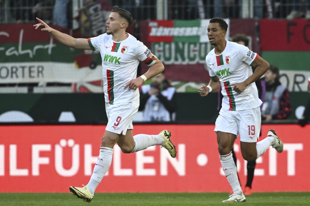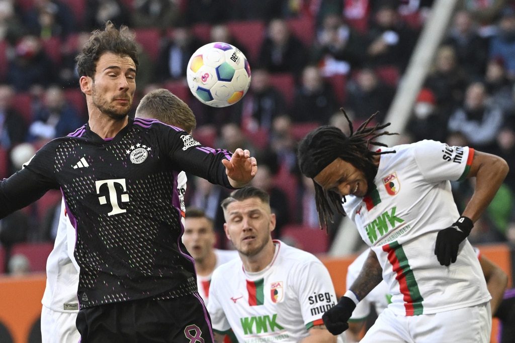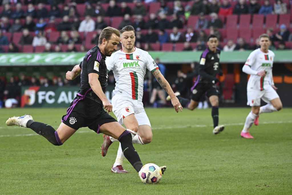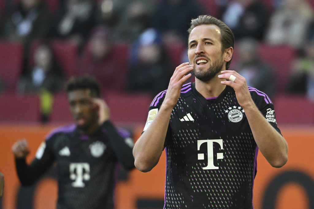 Munich’s Raphael Guerreiro, left, and Augsburg’s Elvis Rexhbecaj battle for the ball during the Bundesliga soccer match between FC Augsburg and Bayern Munich at the WWK-Arena, Augsburg, Germany, Saturday Jan. 27, 2024. (Sven Hoppe/dpa via AP)Augsburg’s Ermedin Demirovic, left, celebrates scoring with teammate Felix Uduokhai during the Bundesliga soccer match between FC Augsburg and Bayern Munich at the WWK-Arena, Augsburg, Germany, Saturday Jan. 27, 2024. (Sven Hoppe/dpa via AP)Munich’s Harry Kane celebrates scoring during the Bundesliga soccer match between FC Augsburg and Bayern Munich at the WWK-Arena, Augsburg, Germany, Saturday Jan. 27, 2024. (Sven Hoppe/dpa via AP)Munich’s Alphonso Davies, left, celebrates scoring with teammate Jamal Musiala during the Bundesliga soccer match between FC Augsburg and Bayern Munich at the WWK-Arena, Augsburg, Germany, Saturday Jan. 27, 2024. (Sven Hoppe/dpa via AP)Munich’s Harry Kane, left, and Augsburg’s Jeffrey Gouweleeuw battle for the ball during the Bundesliga soccer match between FC Augsburg and Bayern Munich at the WWK-Arena, Augsburg, Germany, Saturday Jan. 27, 2024. (Sven Hoppe/dpa via AP)Augsburg’s Kristijan Jakic and Munich’s Raphael Guerreiro battle for the ball during the Bundesliga soccer match between FC Augsburg and Bayern Munich at the WWK-Arena, Augsburg, Germany, Saturday Jan. 27, 2024. (Sven Hoppe/dpa via AP)Munich’s Leon Goretzka and Augsburg’s Kevin Mbabu, right, battle for the ball during the Bundesliga soccer match between FC Augsburg and Bayern Munich at the WWK-Arena, Augsburg, Germany, Saturday Jan. 27, 2024. (Sven Hoppe/dpa via AP)Munich’s Kingsley Coman, 2nd right, receives medical treatment during the Bundesliga soccer match between FC Augsburg and Bayern Munich at the WWK-Arena, Augsburg, Germany, Saturday Jan. 27, 2024. (Sven Hoppe/dpa via AP)Munich’s Harry Kane during the Bundesliga soccer match between FC Augsburg and Bayern Munich at the WWK-Arena, Augsburg, Germany, Saturday Jan. 27, 2024. (Sven Hoppe/dpa via AP)Munich’s Harry Kane in action against Augsburg’s Felix Uduokhai, left, and Jeffrey Gouweleeuw during the Bundesliga soccer match between FC Augsburg and Bayern Munich at the WWK-Arena, Augsburg, Germany, Saturday Jan. 27, 2024. (Sven Hoppe/dpa via AP)