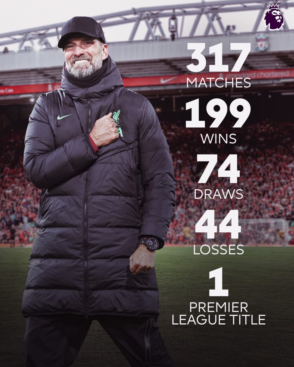 สำหรับ เจอร์เก้น คล็อปป์ เข้ามาคุม ลิเวอร์พูล เมื่อเดือนตุลาคม ปี 2015 และเมื่อปี 2022 เพิ่งต่อสัญญาคุมทีมไปจนถึงปี 2026 โดยตลอด 8 ปีครึ่งที่ทำงานในถิ่น แอนฟิลด์ ประสบความสำเร็จพาทีมได้แชมป์ ยูฟ่า แชมเปี้ยนส์ ลีก, พรีเมียร์ลีก, สโมสรโลก, เอฟเอ คัพ, ลีก คัพ, ยูฟ่า ซูเปอร์ คัพ และ คอมมิวนิตี้ ชิลด์