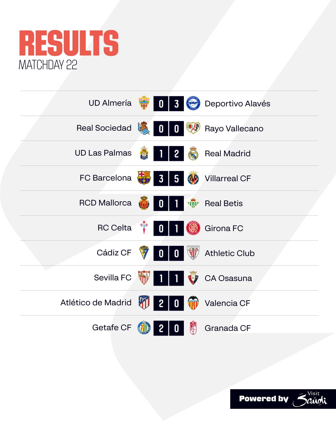สรุปผล การแข่งขัน ลาลีกา สเปน 2023/24 หลังจบนัดที่ 22