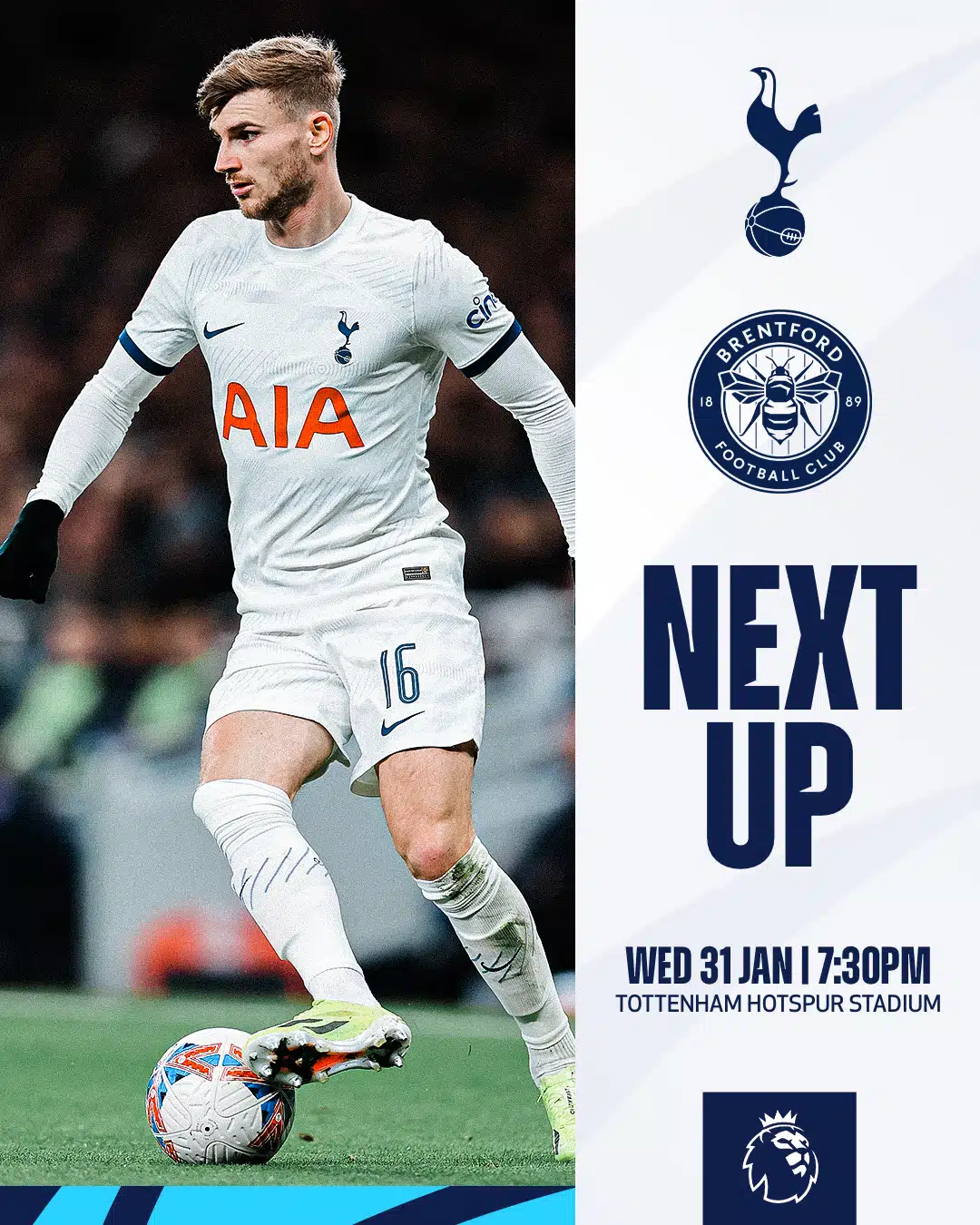 - แมตช์การแข่งขัน : ท็อตแน่ม ฮ็อทสเปอร์ พบ เบรนท์ฟอร์ด