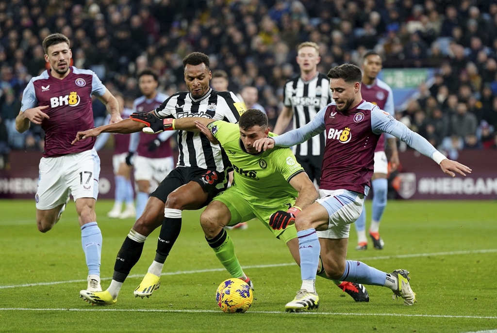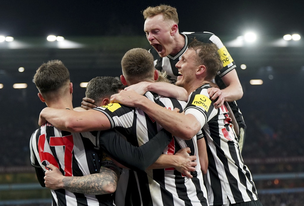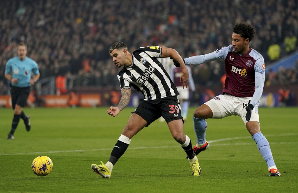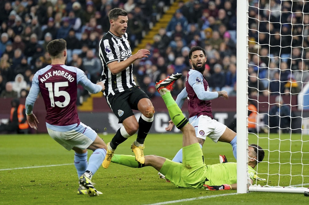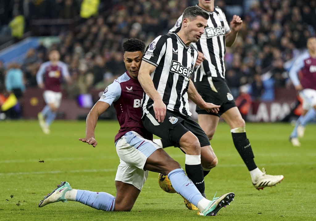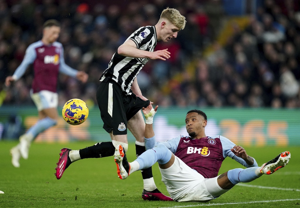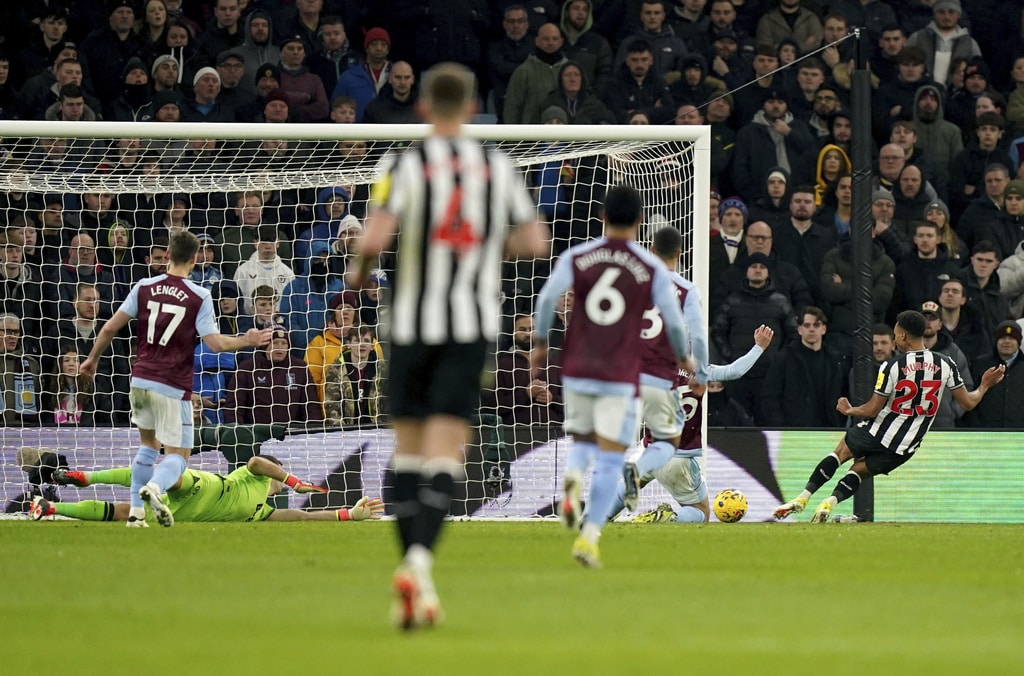 Newcastle United’s Lewis Miley, left, and Aston Villa’s Boubacar Kamara battle for the ball during their English Premier League soccer match at Villa Park, Birmingham, England, Tuesday, Jan. 30, 2024. (Nick Potts/PA via AP)Aston Villa’s Ollie Watkins, left, and Newcastle United’s Fabian Schar battle for the ball during their English Premier League soccer match at Villa Park, Birmingham, England, Tuesday, Jan. 30, 2024. (Jacob King/PA via AP)Newcastle United’s Anthony Gordon, left, and Aston Villa’s Ezri Konsa battle for the ball during their English Premier League soccer match at Villa Park, Birmingham, England, Tuesday, Jan. 30, 2024. (Nick Potts/PA via AP)Newcastle United’s Jacob Murphy, right, scores his side’s third goal of the game during their English Premier League soccer match against Aston Villa at Villa Park, Birmingham, England, Tuesday, Jan. 30, 2024. (Jacob King/PA via AP)Newcastle United’s Fabian Schar, center, scores his sides second goal of the game during their English Premier League soccer match against Aston Villa at Villa Park, Birmingham, England, Tuesday, Jan. 30, 2024. (Jacob King/PA via AP)Newcastle United’s Fabian Schar, center obscured, is mobbed by his team mates after scoring his sides second goal of the game during their English Premier League soccer match against Aston Villa at Villa Park, Birmingham, England, Tuesday, Jan. 30, 2024. (Jacob King/PA via AP)Newcastle United’s Jacob Murphy, second left, battles for the ball with Aston Villa goalkeeper Emiliano Martinez, second right, and Alex Moreno, right, during their English Premier League soccer match at Villa Park, Birmingham, England, Tuesday, Jan. 30, 2024. (Jacob King/PA via AP)Newcastle United’s Kieran Trippier, left, and Aston Villa’s Youri Tielemans battle for the ball during their English Premier League soccer match at Villa Park, Birmingham, England, Tuesday, Jan. 30, 2024. (Jacob King/PA via AP)Newcastle United’s Bruno Guimaraes, left, and Aston Villa’s Boubacar Kamara battle for the ball during their English Premier League soccer match at Villa Park, Birmingham, England, Tuesday, Jan. 30, 2024. (Jacob King/PA via AP)