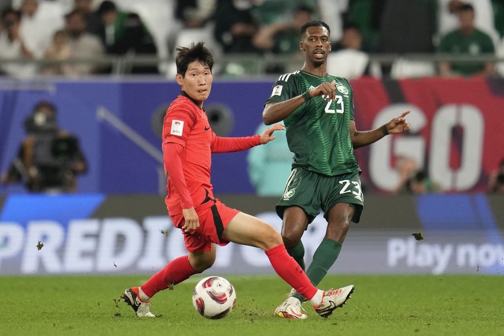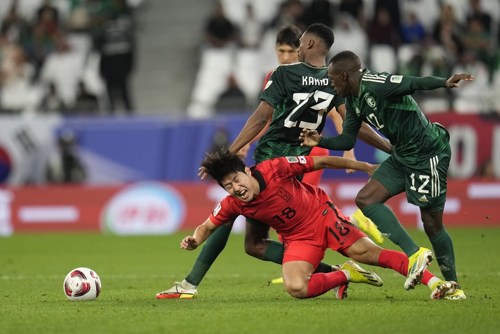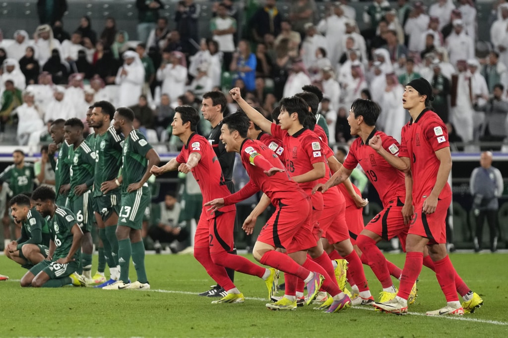 South Korea’s Lee Kang-in, center, grimaces as he fights for the ball against Saudi Arabia’s Saud Abdulhamid, right, and Saudi Arabia’s Mohammed Kanno, back, during the Asian Cup round of 16 soccer match between Saudi Arabia and South Korea at Education City Stadium Al Rayyan, Qatar, Tuesday, Jan. 30, 2024. (AP Photo/Aijaz Rahi)South Korea’s goalkeeper Jo Hyeon-wo, back, embraces South Korea’s Kim Young-gwon after he scored a goal in a penalty kick shoot-out during the Asian Cup round of 16 soccer match between Saudi Arabia and South Korea at Education City Stadium Al Rayyan, Qatar, Tuesday, Jan. 30, 2024. (AP Photo/Aijaz Rahi)South Korea’s Son Heung-Min, left, and South Korea’s Hwang Hee-Chan celebrate after penalty shootout at the end of the Asian Cup Round of 16 soccer match between Saudi Arabia and South Korea, at the Education City Stadium in Al Rayyan, Qatar, Tuesday, Jan. 30, 2024. (AP Photo/Thanassis Stavrakis)South Korea’s goalkeeper Jo Hyeon-woo, center, waves to the crowds as he leaves the pitch with his teammates after beating Saudi Arabia in a penalty kick shoot-out during the Asian Cup round of 16 soccer match between Saudi Arabia and South Korea at Education City Stadium Al Rayyan, Qatar, Tuesday, Jan. 30, 2024. (AP Photo/Aijaz Rahi)South Korea celebrates after winning the game in a penalty kick shoot-out during the Asian Cup round of 16 soccer match between Saudi Arabia and South Korea at Education City Stadium Al Rayyan, Qatar, Tuesday, Jan. 30, 2024. (AP Photo/Aijaz Rahi)South Korea’s Hong Hyun-seok, left, and Saudi Arabia’s Mohammed Kanno battle for the ball during the Asian Cup round of 16 soccer match between Saudi Arabia and South Korea at Education City Stadium Al Rayyan, Qatar, Tuesday, Jan. 30, 2024. (AP Photo/Aijaz Rahi)South Korea’s Cho Gue-sung, left, and Saudi Arabia’s Abdulrahman Ghareeb battle for the ball during the Asian Cup round of 16 soccer match between Saudi Arabia and South Korea at Education City Stadium Al Rayyan, Qatar, Tuesday, Jan. 30, 2024. (AP Photo/Aijaz Rahi)Saudi Arabia’s goalkeeper Ahmed Alkassar, center, is checked out by the medical team after he collided with a player from South Korea during the Asian Cup round of 16 soccer match between Saudi Arabia and South Korea at Education City Stadium Al Rayyan, Qatar, Tuesday, Jan. 30, 2024. (AP Photo/Aijaz Rahi)South Korea’s Cho Gue-sung, right, heads to score his side’s first goal during the Asian Cup round of 16 soccer match between Saudi Arabia and South Korea at Education City Stadium Al Rayyan, Qatar, Tuesday, Jan. 30, 2024. (AP Photo/Aijaz Rahi)Saudi Arabia’s Abdullah Radif, left, reacts after missing a chance to score during the Asian Cup Round of 16 soccer match between Saudi Arabia and South Korea, at the Education City Stadium in Al Rayyan, Qatar, Tuesday, Jan. 30, 2024. (AP Photo/Thanassis Stavrakis)