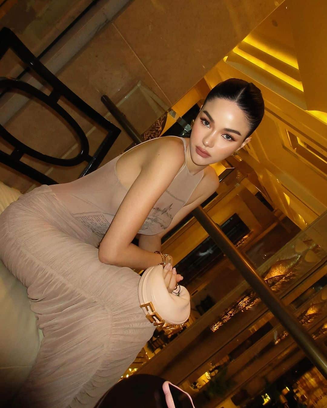 ด้วยความเป็นผ้าซีทรูบางรัดรูปเผยเห็นสัดส่วนชัดเจน และเนื้อผ้าสีเนื้ออมชมพูพอดีกับผิวแบบปังปุริเย่ พอดีกับเมคอัพตาคมเฉี่ยวแบบสายฝอ และผมหางม้ารวบตึงดูเซ็กซี่ขยี้ใจ