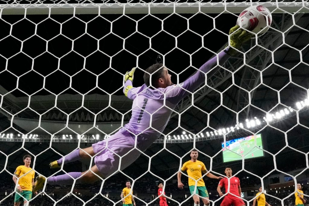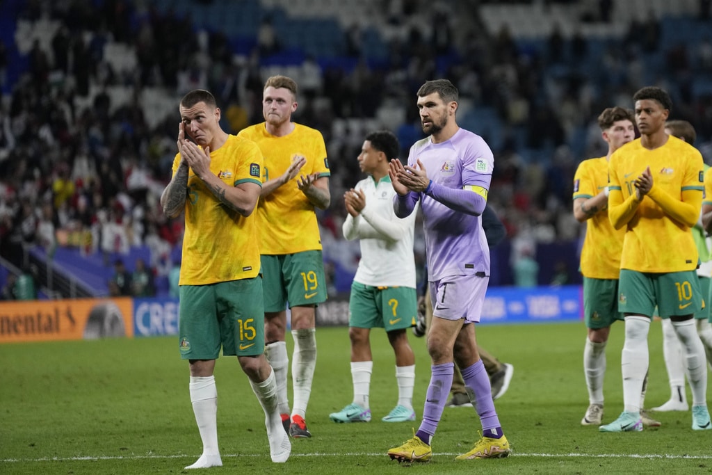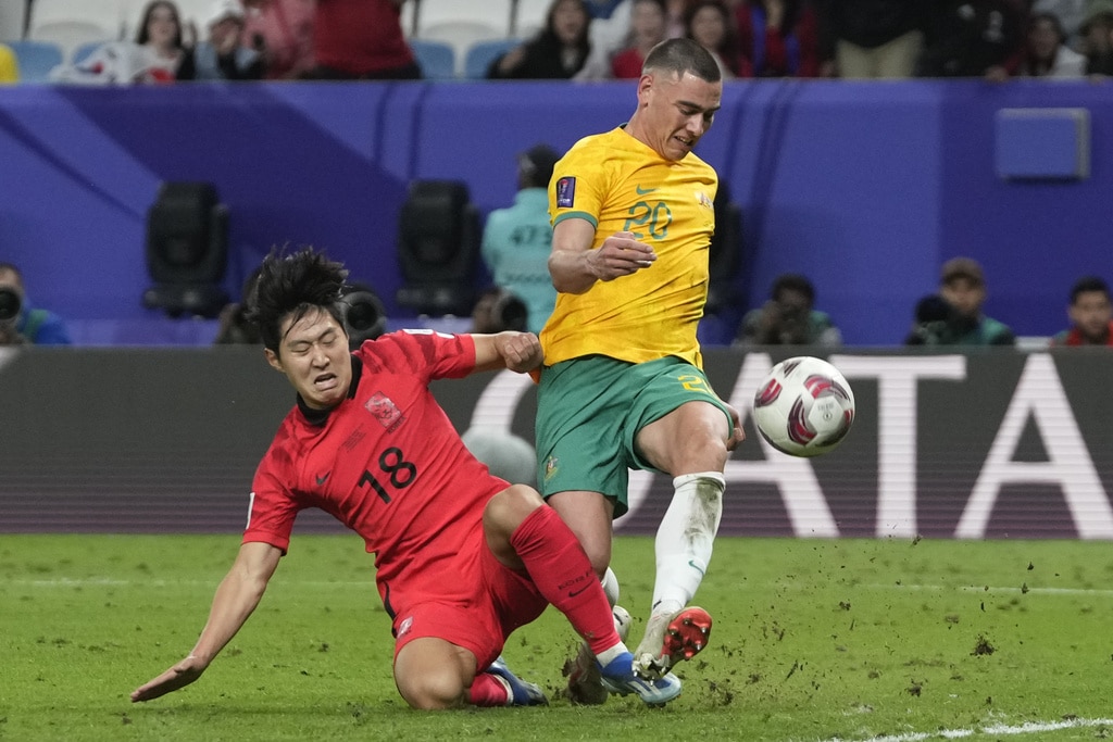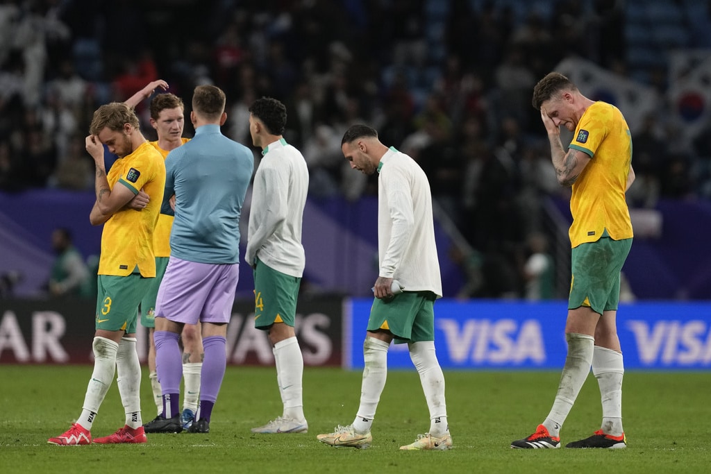 South Korea’s Son Heung-min, centre, celebrates as Hwang Hee-chan scored his side’s first goal during the Asian Cup quarterfinal soccer match between Australia and South Korea at Al Janoub Stadium in Al Wakrah, Qatar, Friday, Feb. 2, 2024. (AP Photo/Aijaz Rahi)Australia’s goalkeeper Mathew Ryan misses South Korea side’s second goal by Son Heung-min during the Asian Cup quarterfinal soccer match between Australia and South Korea at Al Janoub Stadium in Al Wakrah, Qatar, Friday, Feb. 2, 2024. (AP Photo/Aijaz Rahi)South Korea’s Lee Kang-in, left, and Australia’s Lewis Miller battle for the ball during the Asian Cup quarterfinal soccer match between Australia and South Korea at Al Janoub Stadium in Al Wakrah, Qatar, Friday, Feb. 2, 2024. (AP Photo/Thanassis Stavrakis)Players from Australia prepare to leave the pitch after losing 2-1 during the Asian Cup quarterfinal soccer match between Australia and South Korea at Al Janoub Stadium in Al Wakrah, Qatar, Friday, Feb. 2, 2024. (AP Photo/Thanassis Stavrakis)South Korea’s Son Heung-min celebrates after winning the Asian Cup quarterfinal soccer match between Australia and South Korea at Al Janoub Stadium in Al Wakrah, Qatar, Friday, Feb. 2, 2024. (AP Photo/Aijaz Rahi)South Korea’s Son Heung-min celebrates after winning the Asian Cup quarterfinal soccer match between Australia and South Korea at Al Janoub Stadium in Al Wakrah, Qatar, Friday, Feb. 2, 2024. (AP Photo/Aijaz Rahi)Australia’s team players react after the Asian Cup quarterfinal soccer match between Australia and South Korea at Al Janoub Stadium in Al Wakrah, Qatar, Friday, Feb. 2, 2024. (AP Photo/Aijaz Rahi)South Korea’s Lee Jae-sung, left, and Australia’s Bruno Fornapoli challenge for the ball during the Asian Cup quarterfinal soccer match between Australia and South Korea at Al Janoub Stadium in Al Wakrah, Qatar, Friday, Feb. 2, 2024. (AP Photo/Aijaz Rahi)South Korea’s Yang Hyun-jun, left, and Australia’s Jordan Bos battle for the ball during the Asian Cup quarterfinal soccer match between Australia and South Korea at Al Janoub Stadium in Al Wakrah, Qatar, Friday, Feb. 2, 2024. (AP Photo/Thanassis Stavrakis)