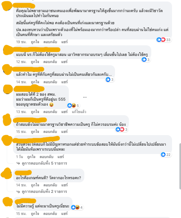 ผู้ใช้เฟซบุ๊กรายนี้มองว่าการสอบวัดคะแนนไม่ได้เป็นตัวชี้วัดหา “ครูดี” ที่แท้จริง ครูที่ดีบางคนสอบไม่ผ่าน ก็ทำให้เด็กและระบบการศึกษาต้องสูญเสียบุคลากรดีๆ ไป ในขณะที่คนสอบผ่านได้คะแนนสูงๆ ก็ไม่ได้การันตีว่าเป็นครูที่สอนดี ครูเก่ง สอนไม่ได้เรื่องก็มีเยอะแยะ