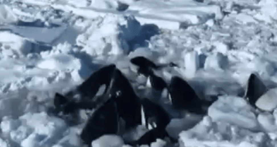 ขณะที่ภาพถ่ายโดรนของกลุ่ม วายไลฟ์โปร ซึ่งเป็นกลุ่มพิทักษ์สัตว์ท้องถิ่น ได้เผยภาพวินาทีของเหล่าวาฬเพชรฆาตที่ติดอยู่ในรูเล็กๆ ซึ่งคนถ่ายเล่าว่าเขาเห็นวาฬอย่างราวๆ 13 ตัว หัวโผล่มาจากรูน้ำแข็ง พวกมันดูหายใจลำบาก และในกลุ่มเหมือนจะมี ลูกวาฬประมาณ 3-4 ตัวด้วย