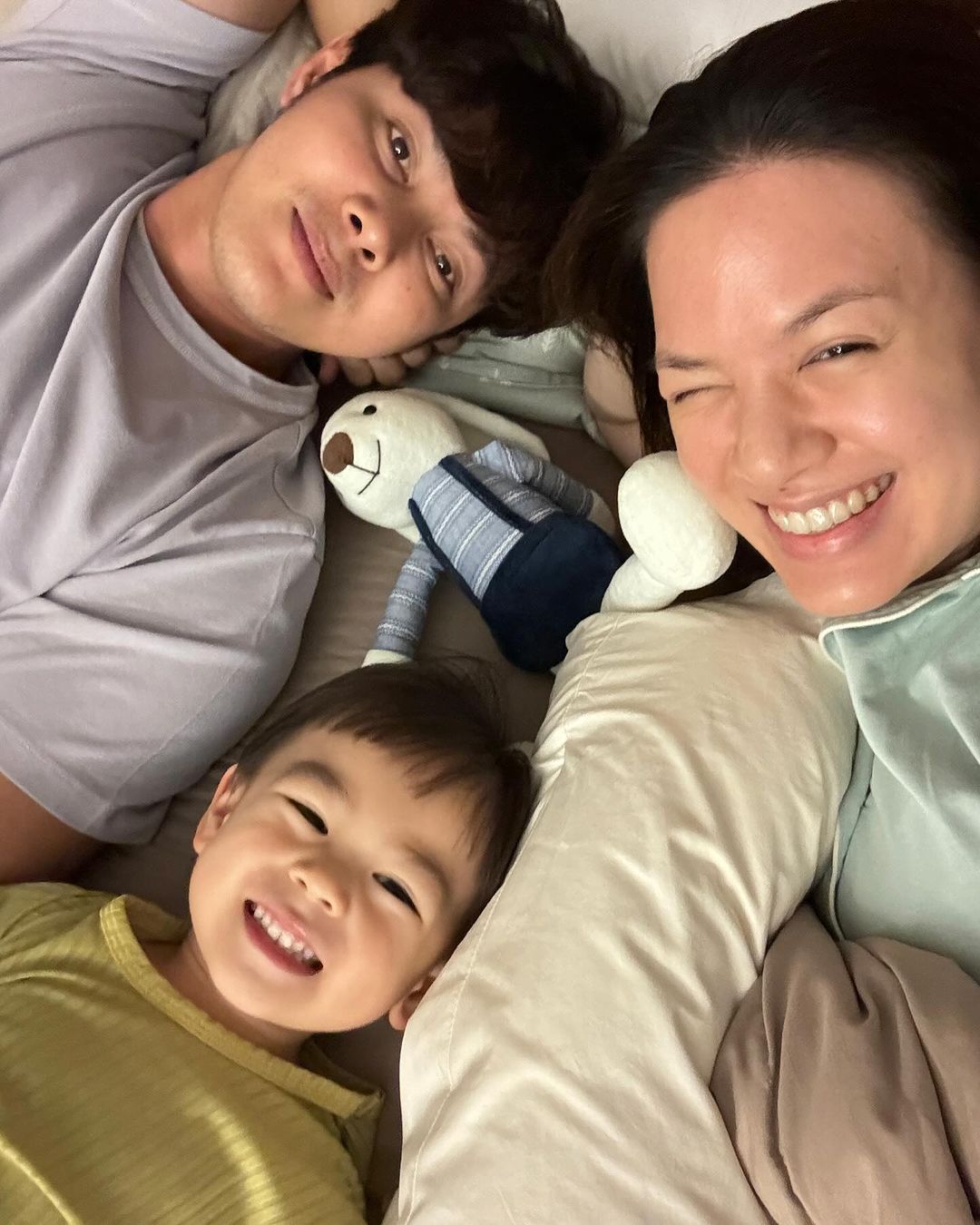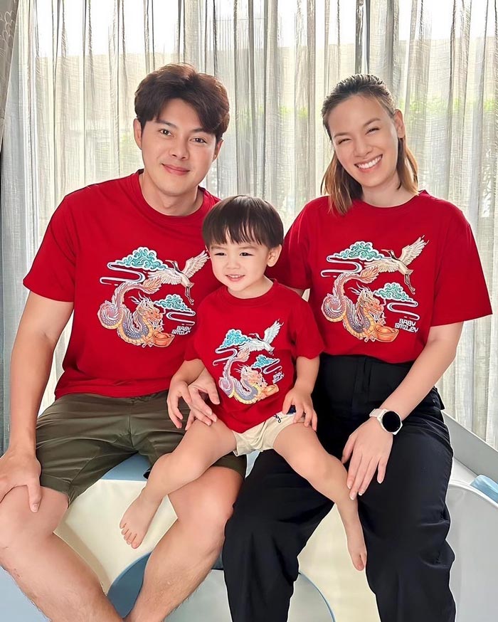 “กราฟมีน้องแล้วน้าาา เย้ อาการดีใจของลูกกราฟ ก็ตามรูปเลยค่ะ .. ตลอดระยะเวลา 3 เดือนกว่า กราฟกับพ่อแมน ตื่นเต้นดีใจกันมาก มีความสุขกันสุด ๆ คุยกับน้องในท้องทุกวัน เห่อน้องหนัก บอกว่าอยากเล่นอยากอุ้มน้องแล้วให้น้องรีบออกมาเลย #แม่นี่ชื่นใจ ครอบครัวเราจะใหญ่ขึ้น เป็นกำลังใจให้พวกเราด้วยนะคะ #แสบซ่าสาศรี #สุขคูณสี่”