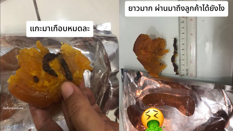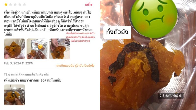 อุทาหรณ์ สาวสั่งมันหนึบจากแอปฯ มากิน ผงะกัดเจอ เส้นปริศนาสีดำมีขน คล้ายตะขาบ ด้านร้านค้าตอบกลับด้วยประโยคสุดห้วน ทำเอาชาวเน็ตเห็นแล้วเกิดอาการไม่พอใจ