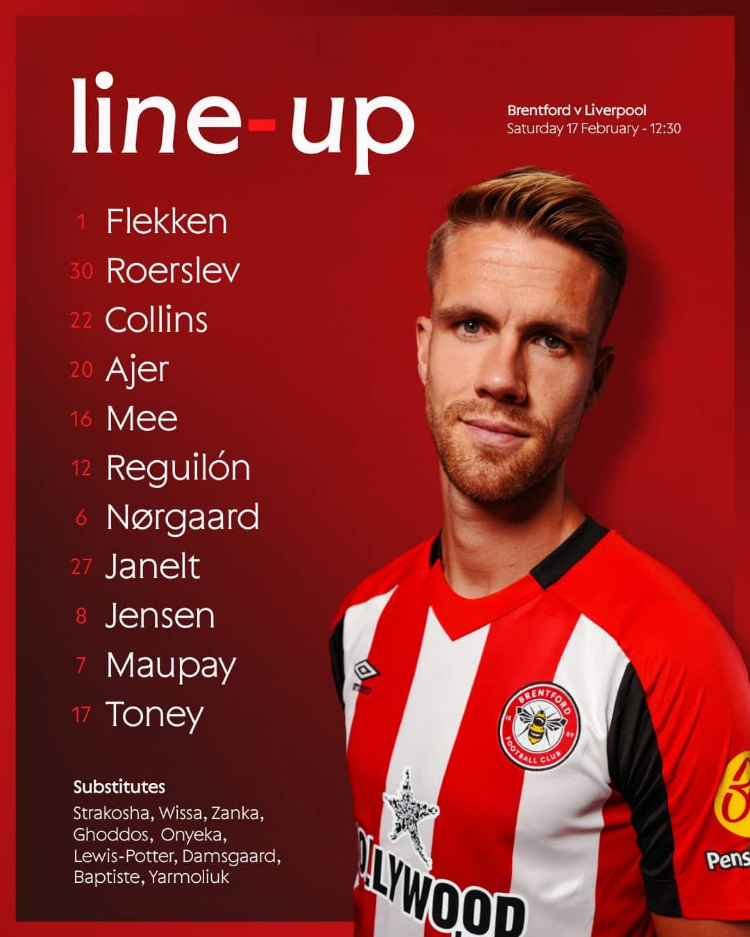 11 ตัวจริง เบรนท์ฟอร์ด พบ ลิเวอร์พูล แข่ง 19.30 น. ฟุตบอล พรีเมียร์ลีก (ลิงก์ดูบอลสด)