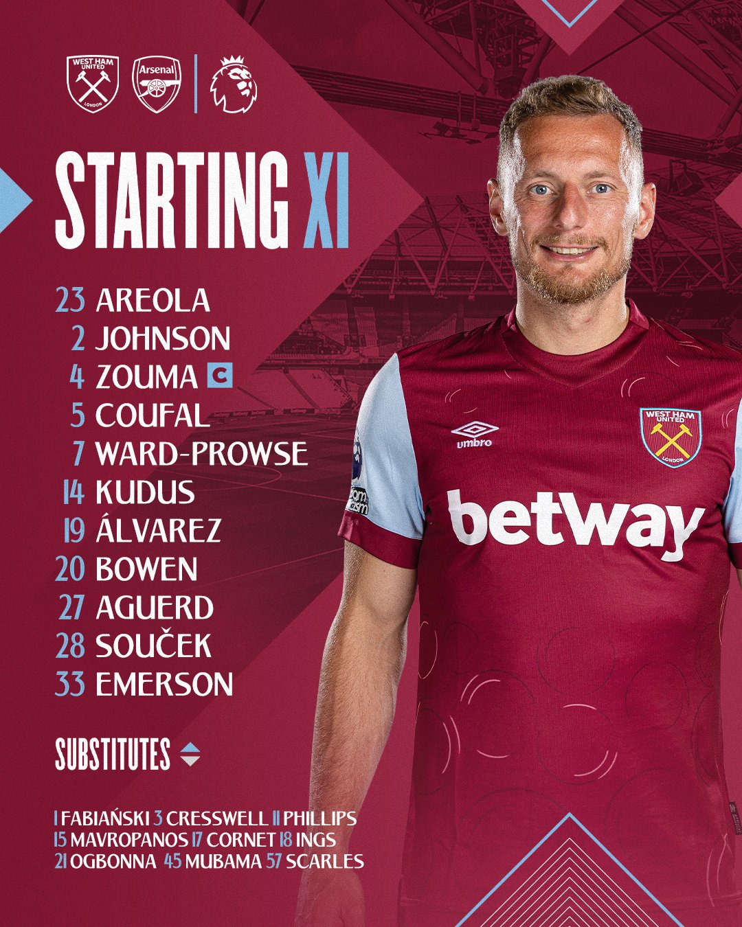11 ตัวจริง เวสต์แฮม พบ อาร์เซนอล แข่ง 21.00 น. ฟุตบอล พรีเมียร์ลีก (ลิงก์ดูบอลสด)
