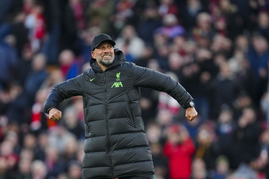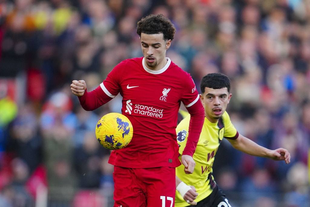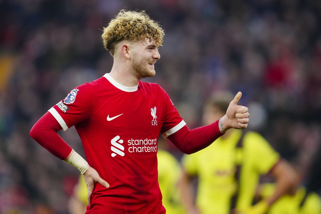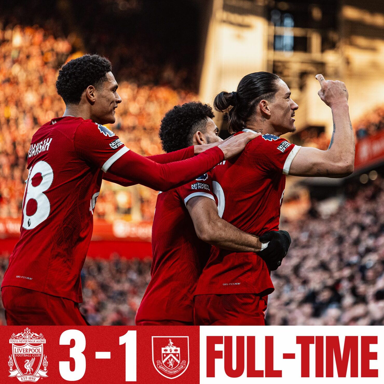 Burnley’s Dara O’Shea celebrates after scoring his side’s opening goal during the English Premier League soccer match between Liverpool and Burnley, at Anfield stadium in Liverpool, England, Saturday, Feb. 10, 2024. (AP Photo/Jon Super)Liverpool’s manager Jurgen Klopp celebrates at the end of the English Premier League soccer match between Liverpool and Burnley, at Anfield stadium in Liverpool, England, Saturday, Feb. 10, 2024. (AP Photo/Jon Super)Liverpool’s Harvey Elliott gives the thumbs up signs during the English Premier League soccer match between Liverpool and Burnley, at Anfield stadium in Liverpool, England, Saturday, Feb. 10, 2024. (AP Photo/Jon Super)Burnley’s Hannes Delcroix, left, tries to block a shot from Liverpool’s Wataru Endo, center, during the English Premier League soccer match between Liverpool and Burnley, at Anfield stadium in Liverpool, England, Saturday, Feb. 10, 2024. (AP Photo/Jon Super)Liverpool’s Darwin Nunez, left, scores his side’s third goal during the English Premier League soccer match between Liverpool and Burnley, at Anfield stadium in Liverpool, England, Saturday, Feb. 10, 2024. (AP Photo/Jon Super)Liverpool’s Wataru Endo, left, duels for the ball with Burnley’s Zeki Amdouni during the English Premier League soccer match between Liverpool and Burnley, at Anfield stadium in Liverpool, England, Saturday, Feb. 10, 2024. (AP Photo/Jon Super)Liverpool’s Diogo Jota, left, duels for the ball with Burnley’s Hannes Delcroix during the English Premier League soccer match between Liverpool and Burnley, at Anfield stadium in Liverpool, England, Saturday, Feb. 10, 2024. (AP Photo/Jon Super)Liverpool’s Curtis Jones, front, duels for the ball with Burnley’s Zeki Amdouni during the English Premier League soccer match between Liverpool and Burnley, at Anfield stadium in Liverpool, England, Saturday, Feb. 10, 2024. (AP Photo/Jon Super)Liverpool’s Luis Diaz, left, scores his side’s second goal during the English Premier League soccer match between Liverpool and Burnley, at Anfield stadium in Liverpool, England, Saturday, Feb. 10, 2024. (AP Photo/Jon Super)