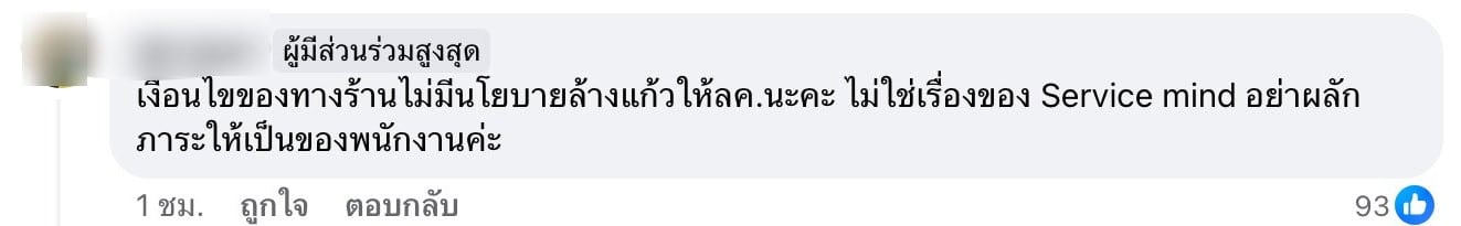 เพียงไม่กี่นาทีหลังจากโพสต์เผยแพร่ออกไป สมาชิกในกลุ่มเข้ามาแสดงความคิดเห็น โดยส่วนใหญ่เป็นกระแสวิจารณ์ตีกลับ บอกว่านี่ไม่ใช่นโยบายบริการของร้าน อย่าผลักภาระให้พนักงานเพิ่ม