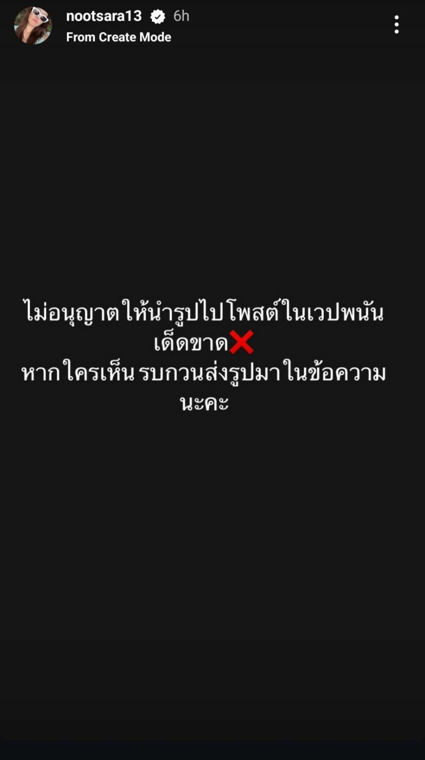 ซึ่งเจ้าตัว ได้โพสต์ผ่านทางโซเชียลมีเดียส่วนตัว ซึ่งระบุไว้ว่า “ไม่อนุญาตให้นำรูปไปโพสต์ในเว็บพนันเด็ดขาด หากใครเห็นรบกวนส่งมารูปมาในข้อความนะคะ”