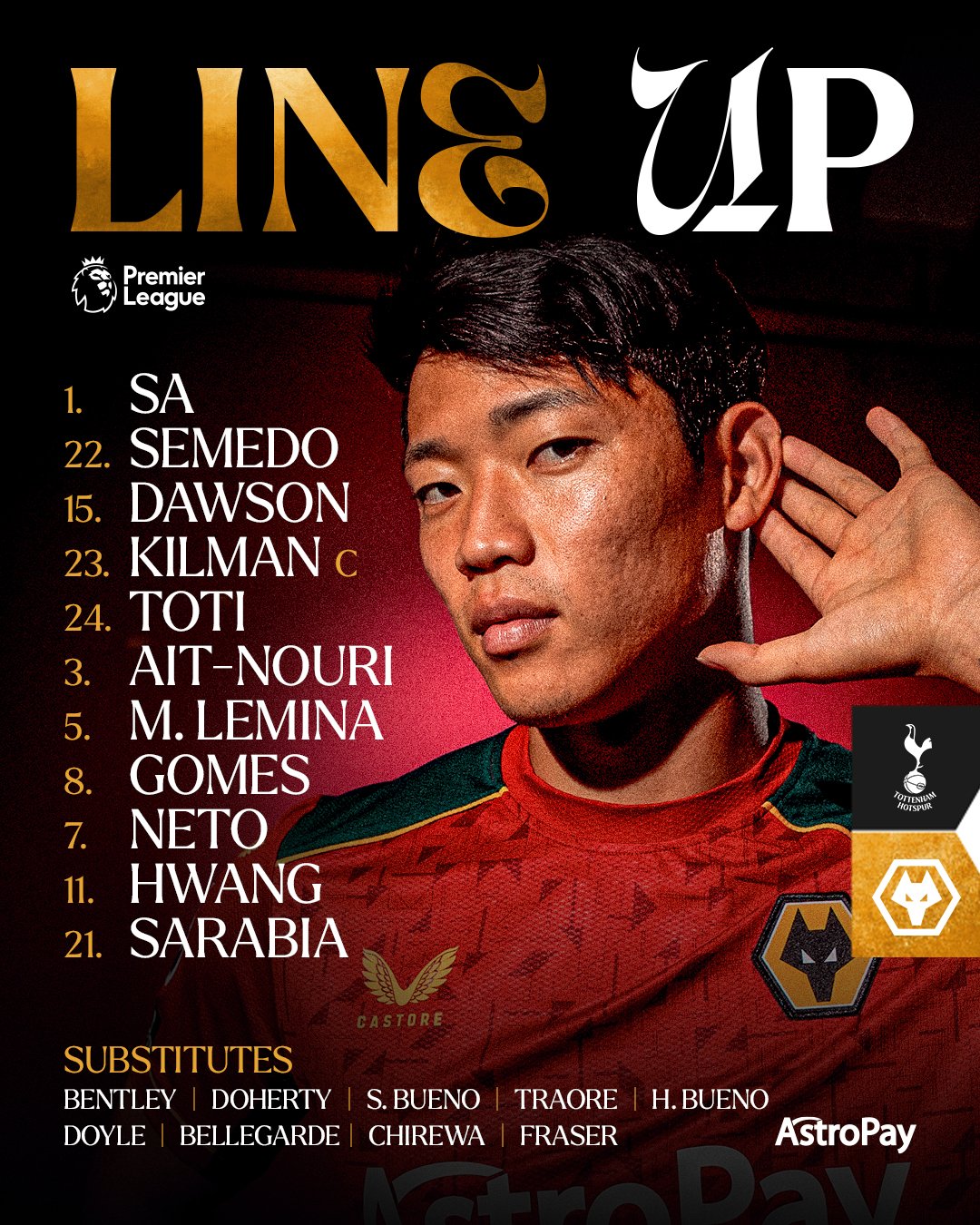 17 กุมภาพันธ์ 2567 รายชื่อผู้เล่น 11 ตัวจริง สเปอร์ส พบ วูล์ฟแฮมป์ตัน ศึกฟุตบอล พรีเมียร์ลีก ฤดูกาล 2023-24 คืนนี้ ลิงก์ถูกลิขสิทธิ์ ดูบอลสดออนไลน์ ทาง True Premier Football เวลา 22.00 น.