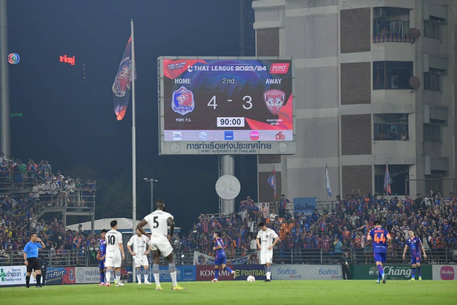ผลการแข่งขันปรากฏว่า เมืองทองฯ ชวดมีแต้มอย่างน่าเสียดาย แม้ได้ 2 ประตูจาก วิลเลียน พ็อพพ์ ขึ้นนำก่อนครึ่งแรก ก่อนสุดท้าย ธีรศักดิ์ เผยพิมาย จะสวมบทซูเปอร์ซับ ลงสำรองรัว 3 เม็ดรวดให้ท่าเรือฯ แซง 3-2 แม้ทีมเยือนจะมาได้ โคทาโระ โอโมริ ยิงไกลสุดงามตีเสมอท้ายเกม ทว่า บารอส ทาร์เดลี่ ก็กระทุ้งทดเจ็บนำชัยสุดดราม่า 4-3