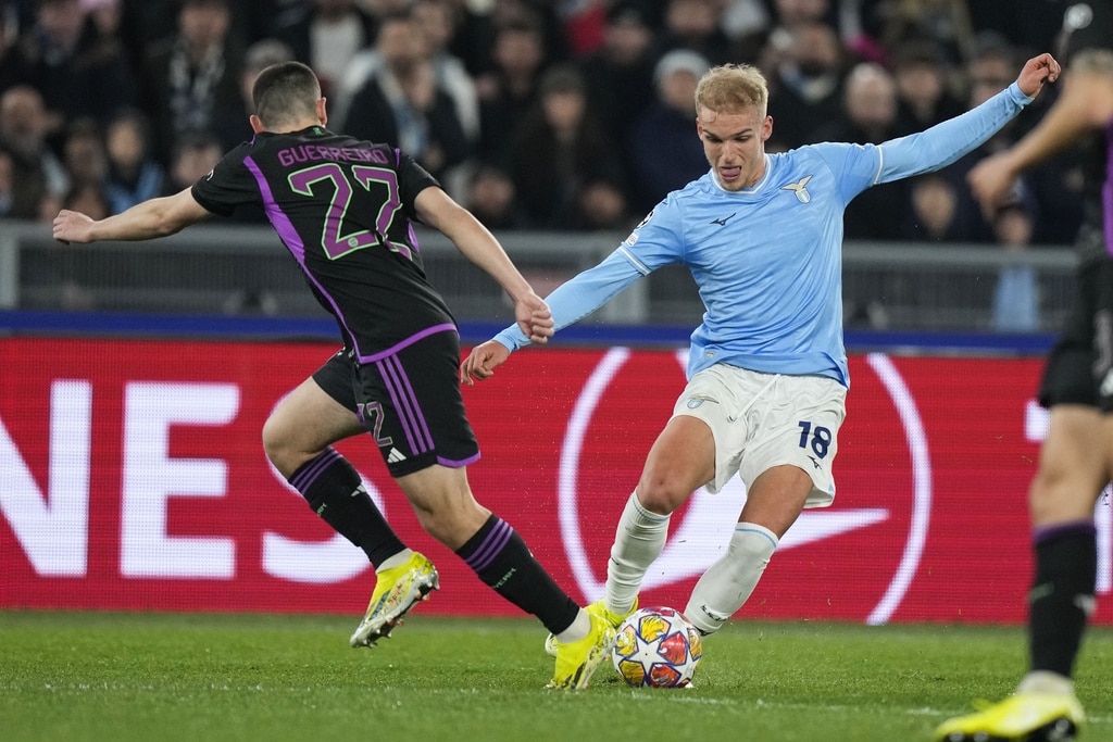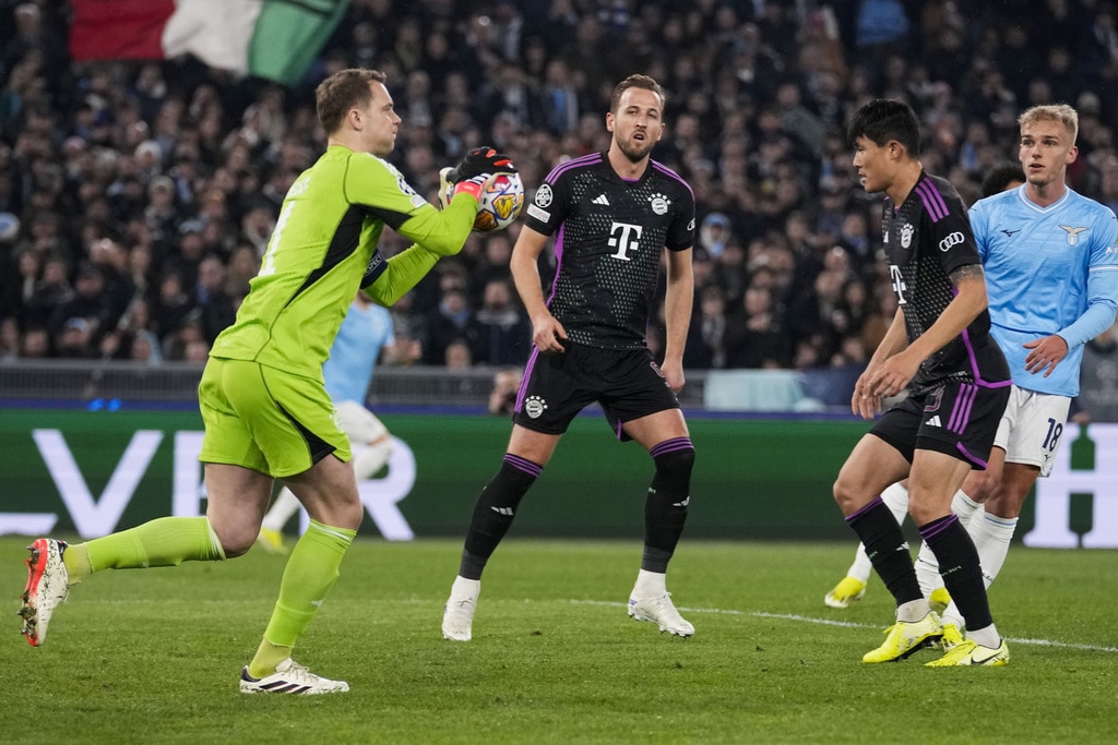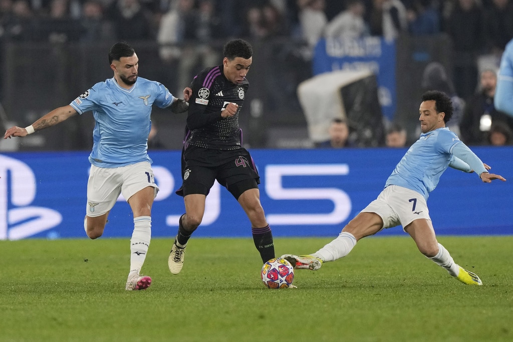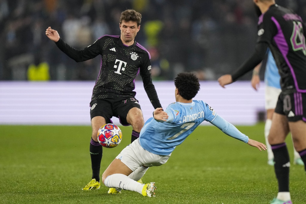 Bayern’s Thomas Mueller is tackled by Lazio’s Felipe Anderson during a Champions League round of 16 first leg soccer match between Lazio and Bayern Munich, at Rome’s Olympic Stadium, Wednesday, Feb. 14, 2024. (AP Photo/Andrew Medichini)Lazio’s Ciro Immobile celebrates after scoring his side’s first goal during a Champions League round of 16 first leg soccer match between Lazio and Bayern Munich, at Rome’s Olympic Stadium, Wednesday, Feb. 14, 2024. (Alfredo Falcone/LaPresse via AP)Bayern’s Jamal Musiala, centre, challenges for the ball with Lazio’s Taty Castellanos and his teammate Felipe Anderson during a Champions League round of 16 first leg soccer match between Lazio and Bayern Munich, at Rome’s Olympic Stadium, Wednesday, Feb. 14, 2024. (AP Photo/Andrew Medichini)Lazio’s Ciro Immobile celebrates after scoring his side’s first goal during a Champions League round of 16 first leg soccer match between Lazio and Bayern Munich, at Rome’s Olympic Stadium, Wednesday, Feb. 14, 2024. (AP Photo/Andrew Medichini)Lazio’s Ciro Immobile celebrates after scoring his side’s first goal during a Champions League round of 16 first leg soccer match between Lazio and Bayern Munich, at Rome’s Olympic Stadium, Wednesday, Feb. 14, 2024. (AP Photo/Andrew Medichini)Bayern’s Dayot Upamecano receives a red card by referee Francois Letexier during a Champions League round of 16 first leg soccer match between Lazio and Bayern Munich, at Rome’s Olympic Stadium, Wednesday, Feb. 14, 2024. (AP Photo/Andrew Medichini)Bayern’s Harry Kane challenges for the ball with Lazio’s Luis Alberto during a Champions League round of 16 first leg soccer match between Lazio and Bayern Munich, at Rome’s Olympic Stadium, Wednesday, Feb. 14, 2024. (AP Photo/Andrew Medichini)Bayern’s head coach Thomas Tuchel watches during a Champions League round of 16 first leg soccer match between Lazio and Bayern Munich, at Rome’s Olympic Stadium, Wednesday, Feb. 14, 2024. (AP Photo/Andrew Medichini)Lazio’s Gustav Isaksen challenges for the ball with Bayern’s Raphael Guerreiro during a Champions League round of 16 first leg soccer match between Lazio and Bayern Munich, at Rome’s Olympic Stadium, Wednesday, Feb. 14, 2024. (AP Photo/Andrew Medichini)Bayern’s goalkeeper Manuel Neuer saves during a Champions League round of 16 first leg soccer match between Lazio and Bayern Munich, at Rome’s Olympic Stadium, Wednesday, Feb. 14, 2024. (AP Photo/Andrew Medichini)