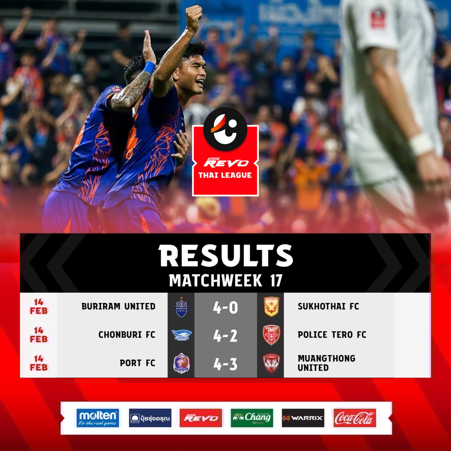 ผลการแข่งขันฟุตบอล รีโว่ ไทยลีก 2023/24 นัดที่ 17 (14 กุมภาพันธ์ 2567)