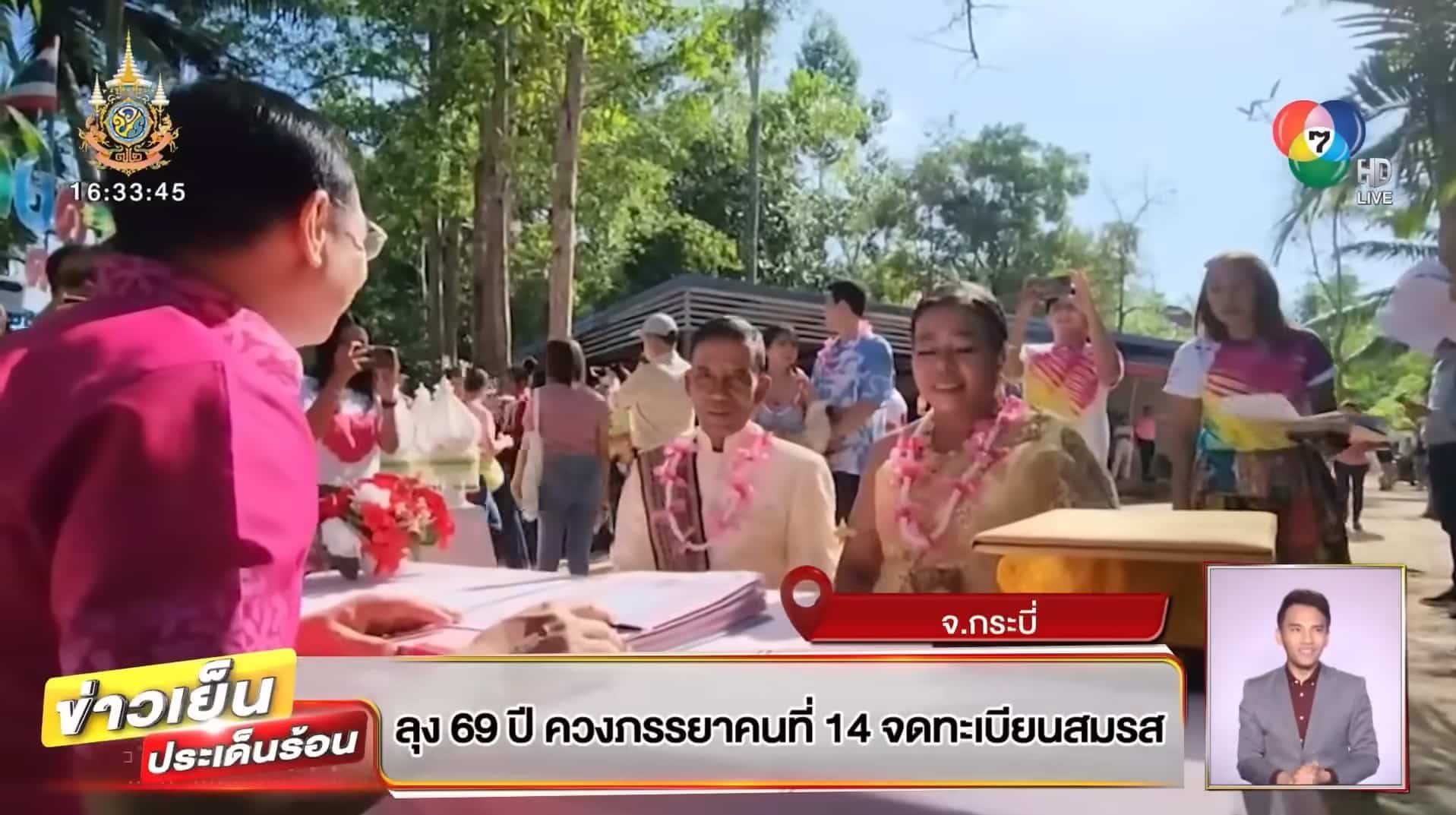 กระบี่หวานเจี๊ยบ! ลุงวัย 69 ควงภรรยาคนที่ 14 จดทะเบียนสมรส ที่คลองหรูด จังหวัดกระบี่ มั่นใจเป็นรักสุดท้ายเพราะภรรยาคนนี้คือรักแท้