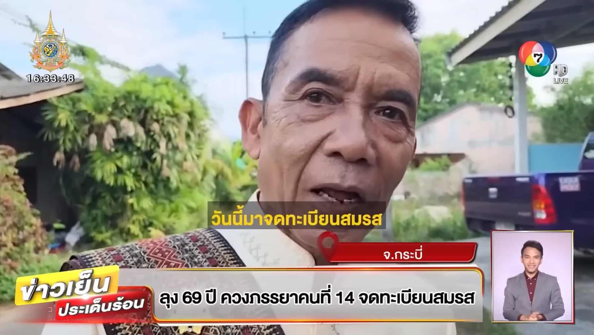 ชื่นมื่น ลุงวัย 69 จดทะเบียนสมรส ภรรยาคนที่ 14 ลั่นหวังเป็นรักสุดท้าย