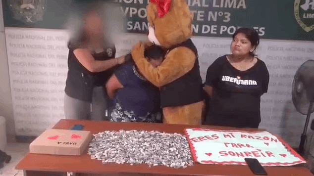 ตำรวจเปรู สวมชุดมาสคอตหมีเท็ดดี้ บุกรวบแม่ค้ายารายใหญ่ รับวาเลนไทน์ หลังถือลูกโป่งและช็อกโกแลต เพื่อล่อให้เธอเดินมาหา