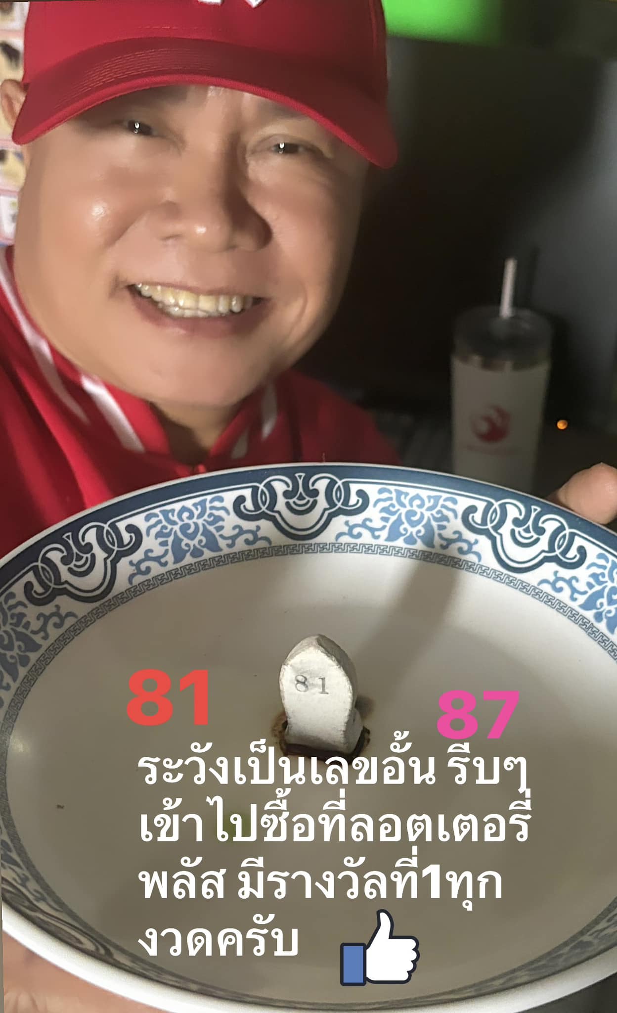 ทั้งนี้อย่างที่คอหวยรู้ดีว่าเลข 1 กับเลข 7 สามารถสลับกันได้ นักร้องดังจึงได้แนะนำให้ซื้อทั้งเลข 81-87 ไปด้วย ก่อนจะทิ้งท้ายว่าระวังเป็นเลขอั้น เพราะเลขท้าย 2 ตัวคู่นี้เป็นหนึ่งในเลขลอตเตอรี่ยอดฮิตมาตลอด
