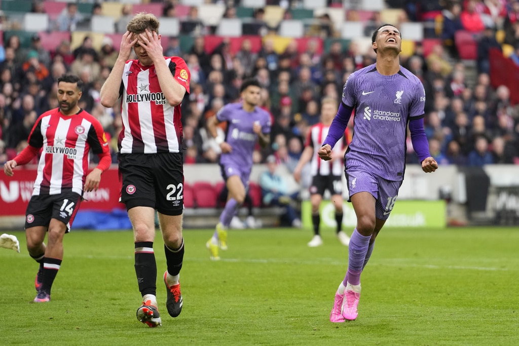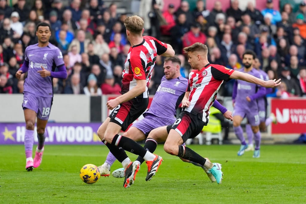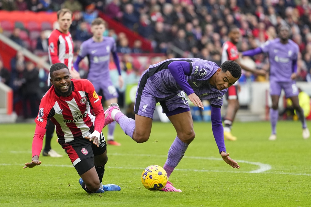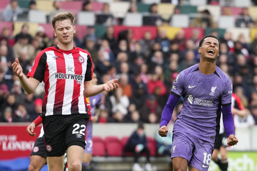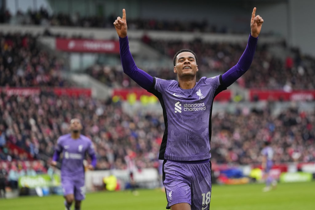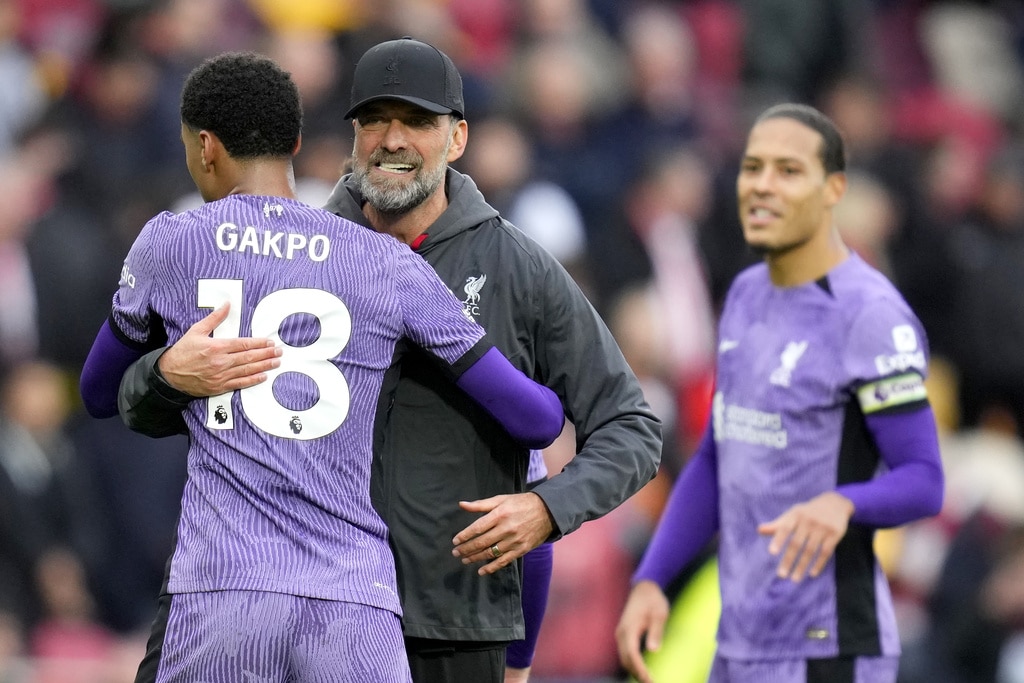 Liverpool’s Diogo Jota vies for the ball with Brentford’s Neal Maupay during the English Premier League soccer match between Brentford and Liverpool at the Gtech Community Stadium in London, Saturday, Feb. 17, 2024. (AP Photo/Kirsty Wigglesworth)Liverpool’s Mohamed Salah celebrates scoring his sides third goal during the English Premier League soccer match between Brentford and Liverpool at the Gtech Community Stadium in London, Saturday, Feb. 17, 2024. (AP Photo/Kirsty Wigglesworth)Liverpool’s manager Jurgen Klopp hugs Liverpool’s Cody Gakpo as he celebrates after the English Premier League soccer match between Brentford and Liverpool at the Gtech Community Stadium in London, Saturday, Feb. 17, 2024. Liverpool won 4-1.(AP Photo/Kirsty Wigglesworth)Liverpool’s Mohamed Salah celebrates scoring his sides third goal during the English Premier League soccer match between Brentford and Liverpool at the Gtech Community Stadium in London, Saturday, Feb. 17, 2024. (AP Photo/Kirsty Wigglesworth)Liverpool’s Cody Gakpo celebrates scoring his sides fourth goal as Brentford’s Nathan Collins reacts during the English Premier League soccer match between Brentford and Liverpool at the Gtech Community Stadium in London, Saturday, Feb. 17, 2024. (AP Photo/Kirsty Wigglesworth)Liverpool’s Cody Gakpo celebrates scoring his sides fourth goal as Brentford’s Nathan Collins reacts during the English Premier League soccer match between Brentford and Liverpool at the Gtech Community Stadium in London, Saturday, Feb. 17, 2024. (AP Photo/Kirsty Wigglesworth)Liverpool’s Cody Gakpo celebrates scoring his sides fourth goal during the English Premier League soccer match between Brentford and Liverpool at the Gtech Community Stadium in London, Saturday, Feb. 17, 2024. (AP Photo/Kirsty Wigglesworth)Liverpool’s Luis Diaz vies for the ball with Brentford’s Keane Lewis-Potter during the English Premier League soccer match between Brentford and Liverpool at the Gtech Community Stadium in London, Saturday, Feb. 17, 2024. (AP Photo/Kirsty Wigglesworth)Liverpool’s Cody Gakpo vies for the ball with Brentford’s Frank Onyeka during the English Premier League soccer match between Brentford and Liverpool at the Gtech Community Stadium in London, Saturday, Feb. 17, 2024. (AP Photo/Kirsty Wigglesworth)Liverpool’s Mohamed Salah scores his sides third goal during the English Premier League soccer match between Brentford and Liverpool at the Gtech Community Stadium in London, Saturday, Feb. 17, 2024. (AP Photo/Kirsty Wigglesworth)Liverpool’s Mohamed Salah scores his sides third goal during the English Premier League soccer match between Brentford and Liverpool at the Gtech Community Stadium in London, Saturday, Feb. 17, 2024. (AP Photo/Kirsty Wigglesworth)Liverpool’s Alexis Mac Allister, centre, scores his sides second goal during the English Premier League soccer match between Brentford and Liverpool at the Gtech Community Stadium in London, Saturday, Feb. 17, 2024. (AP Photo/Kirsty Wigglesworth)