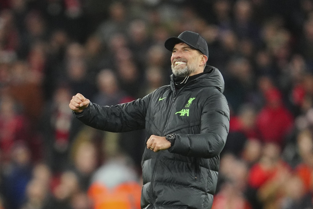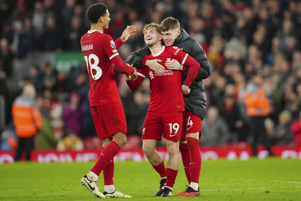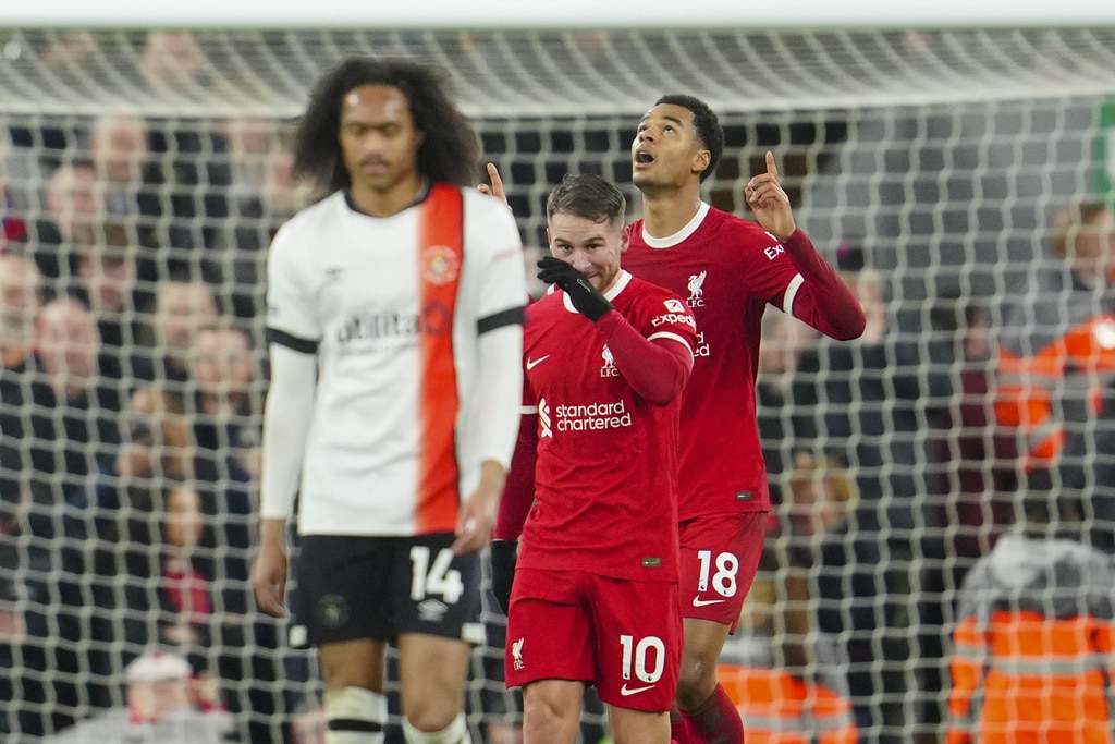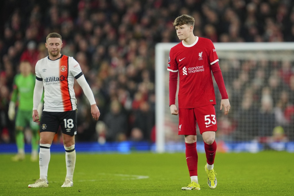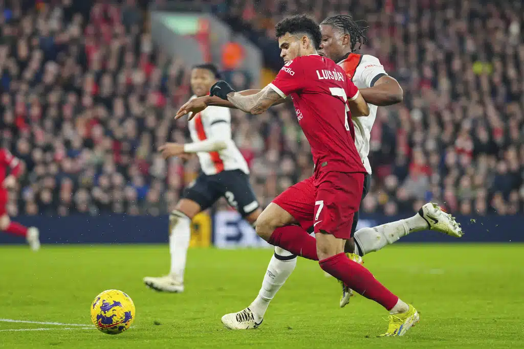 Liverpool’s Luis Diaz makes an attempt at goal during the English Premier League soccer match between Liverpool and Luton Town, at Anfield stadium in Liverpool, England, Wednesday, Feb. 21, 2024. (AP Photo/Jon Super)Liverpool’s James McConnell makes his first appearance during the English Premier League soccer match between Liverpool and Luton Town, at Anfield stadium in Liverpool, England, Wednesday, Feb. 21, 2024. (AP Photo/Jon Super)Luton Town’s Jordan Clark speaks to Luton Town’s goalkeeper Thomas Kaminski at the end of the English Premier League soccer match between Liverpool and Luton Town, at Anfield stadium in Liverpool, England, Wednesday, Feb. 21, 2024. (AP Photo/Jon Super)Liverpool’s manager Jurgen Klopp celebrates at the end of the English Premier League soccer match between Liverpool and Luton Town, at Anfield stadium in Liverpool, England, Wednesday, Feb. 21, 2024. (AP Photo/Jon Super)Liverpool’s Harvey Elliott smiles at the end of the English Premier League soccer match between Liverpool and Luton Town, at Anfield stadium in Liverpool, England, Wednesday, Feb. 21, 2024. (AP Photo/Jon Super)Liverpool’s Luis Diaz celebrates after scoring his side’s third goal during the English Premier League soccer match between Liverpool and Luton Town, at Anfield stadium in Liverpool, England, Wednesday, Feb. 21, 2024. (AP Photo/Jon Super)Liverpool’s Cody Gakpo celebrates after scoring his side’s second goal during the English Premier League soccer match between Liverpool and Luton Town, at Anfield stadium in Liverpool, England, Wednesday, Feb. 21, 2024. (AP Photo/Jon Super)Liverpool’s Virgil van Dijk celebrates after scoring his side’s first goal during the English Premier League soccer match between Liverpool and Luton Town, at Anfield stadium in Liverpool, England, Wednesday, Feb. 21, 2024. (AP Photo/Jon Super)Liverpool’s Harvey Elliott, left, controls the ball next to Luton Town’s Tahith Chong during the English Premier League soccer match between Liverpool and Luton Town, at Anfield stadium in Liverpool, England, Wednesday, Feb. 21, 2024. (AP Photo/Jon Super)