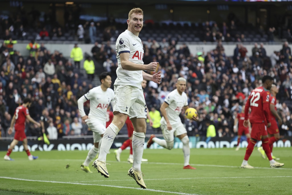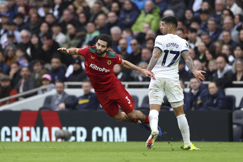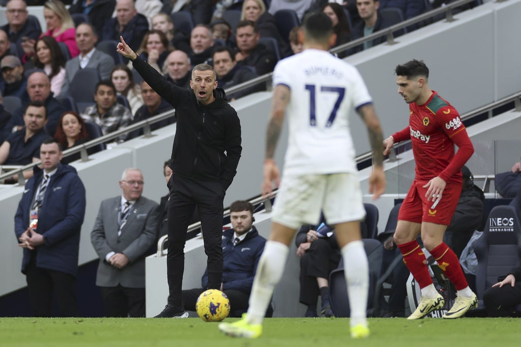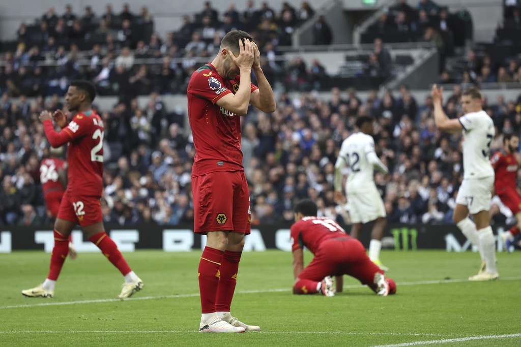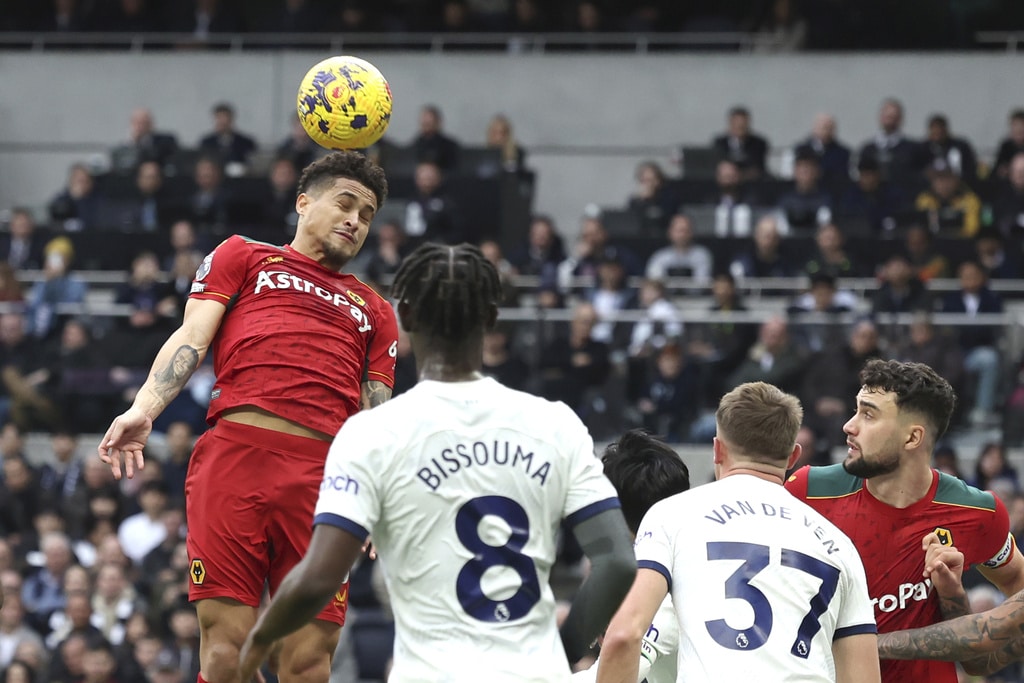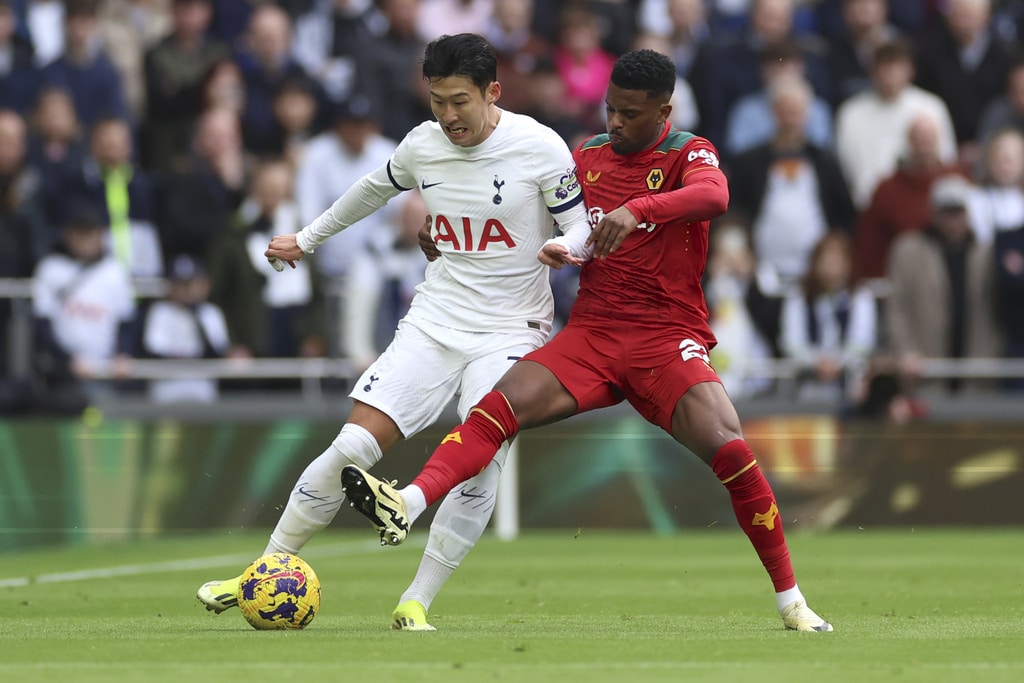 Tottenham’s Son Heung-min, left, challenges for the ball with Wolverhampton Wanderers’ Nelson Semedo during the English Premier League soccer match between Tottenham Hotspur and Wolverhampton at the Tottenham Hotspur Stadium in London, Saturday, Feb. 17, 2024. (AP Photo/Ian Walton)Wolverhampton Wanderers’ Joao Gomes scores his side’s opening goal during the English Premier League soccer match between Tottenham Hotspur and Wolverhampton at the Tottenham Hotspur Stadium in London, Saturday, Feb. 17, 2024. (AP Photo/Ian Walton)Wolverhampton Wanderers’ head coach Gary O’Neil, left, gives instructions from the side line during the English Premier League soccer match between Tottenham Hotspur and Wolverhampton at the Tottenham Hotspur Stadium in London, Saturday, Feb. 17, 2024. (AP Photo/Ian Walton)Tottenham’s Son Heung-min in action during the English Premier League soccer match between Tottenham Hotspur and Wolverhampton at the Tottenham Hotspur Stadium in London, Saturday, Feb. 17, 2024. (AP Photo/Ian Walton)Wolverhampton Wanderers’ Toti, left, challenges for the ball with Tottenham’s Emerson Royal during the English Premier League soccer match between Tottenham Hotspur and Wolverhampton at the Tottenham Hotspur Stadium in London, Saturday, Feb. 17, 2024. (AP Photo/Ian Walton)Tottenham’s Dejan Kulusevski celebrates after scoring his side’s opening goal during the English Premier League soccer match between Tottenham Hotspur and Wolverhampton at the Tottenham Hotspur Stadium in London, Saturday, Feb. 17, 2024. (AP Photo/Ian Walton)Wolverhampton Wanderers’ Pablo Sarabia reacts after missing a scoring chance during the English Premier League soccer match between Tottenham Hotspur and Wolverhampton at the Tottenham Hotspur Stadium in London, Saturday, Feb. 17, 2024. (AP Photo/Ian Walton)Wolverhampton Wanderers’ Rayan Ait-Nouri, left, and Tottenham’s Cristian Romero in action during the English Premier League soccer match between Tottenham Hotspur and Wolverhampton at the Tottenham Hotspur Stadium in London, Saturday, Feb. 17, 2024. (AP Photo/Ian Walton)Tottenham’s Son Heung-min, left, controls the ball in the air ahead of Wolverhampton Wanderers’ Nelson Semedo during the English Premier League soccer match between Tottenham Hotspur and Wolverhampton at the Tottenham Hotspur Stadium in London, Saturday, Feb. 17, 2024. (AP Photo/Ian Walton)