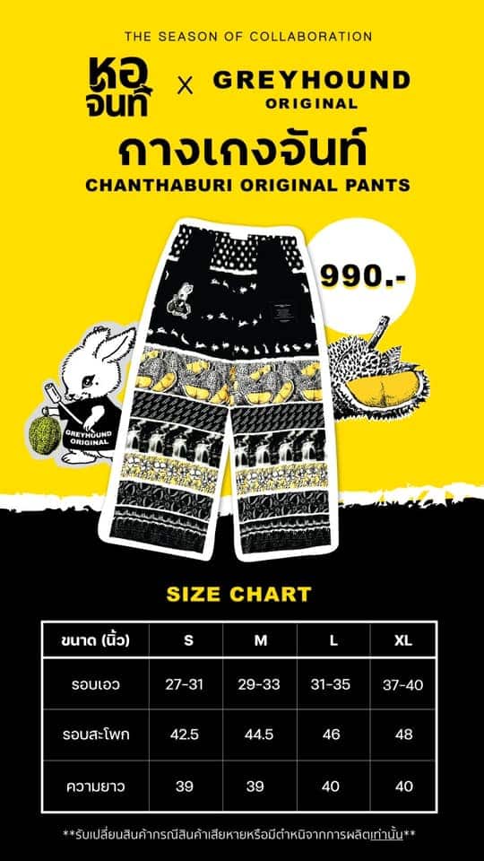 จากแฟชั่นปลุกพลังความเป็นไทยกลายเป็นปลุกดราม่าย่อม ๆ เมื่อ หอการค้า จ.จันทบุรี ได้เปิดตัว กางเกงลายกระต่ายถือไม้เคาะทุเรียน ที่ออกแบบร่วมกับ เกรฮาวด์ (Greyhound) แบรนด์ไทยระดับตำนานที่สายแฟต้องรู้จัก ภายใต้โปรเจ็กต์ชื่อ หอจันท์ x Greyhound Original หวังดึงเอกลักษณ์ประจำจังหวัดจันทบุรีสู่สายตาชาวโลก