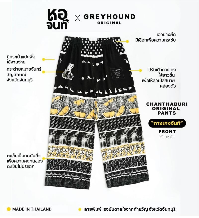 นอกจากนี้ ยังมีแพทเทิร์น ดีเทล และคัตติ้งที่ทางหอจันท์และ Greyhound ตั้งใจทำมาเพื่อแก้ปัญหายอดฮิตที่หลายคนมักพบเจอในกางเกงช้าง เช่น กางเกงเป้าแตก ไม่มีกระเป๋า ตัวขอบยืดย้วย ซึ่งอาจทำให้กางเกง Chanthaburi Original มีความพรีเมี่ยมแตกต่างจากที่อื่นก็เป็นได้