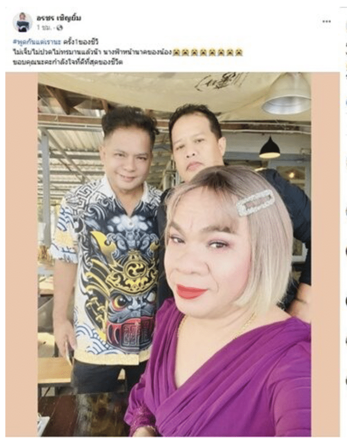 ส่วน อรชร เชิญยิ้ม ได้โพสต์ภาพกับ เจมส์ เชิญยิ้ม ครั้งสุดท้าย ทิ้งข้อความแสนอาลัยว่า “#พูดกันแต่เรานะ ครั้ง1ของชีวิต ไม่เจ็บไม่ปวดไม่ทรมานแล้วน๊า นางฟ้าหน้านาคของน้อง ขอบคุณนะคะกำลังใจที่ดีที่สุดของชีวิต”