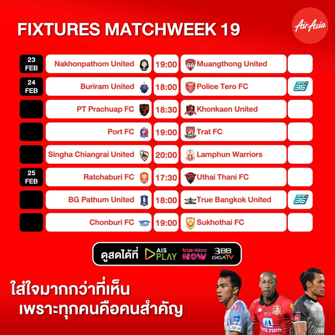ตารางแข่งขัน รีโว่ 2023/24 ไทยลีก โปรแกรมฟุตบอลไทยลีก สัปดาห์ที่ 19 ทุกคู่ถ่ายทอดสดทาง AIS Play และ True Ball Thai