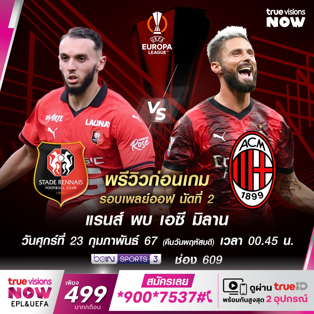 ดูบอลสด ยูฟ่า ยูโรป้าลีก แรนส์ VS มิลาน ลิงก์ดูออนไลน์
