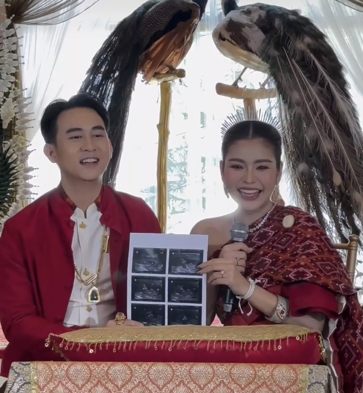 พร้อมกันนั้นภายในงาน เจ้าบ่าวเจ้าสาว “ประกาศท้องลูกคนแรก” เซอร์ไพรส์ความลับที่เก็บมานาน 3 เดือน พร้อมหยิบใบอัลตราซาวด์ขึ้นมาโชว์