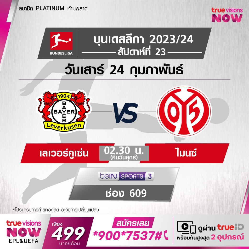 - 30 ก.ย. 66 บุนเดสลีกา ไมนซ์ 05 0 – 3 เลเวอร์คูเซ่น